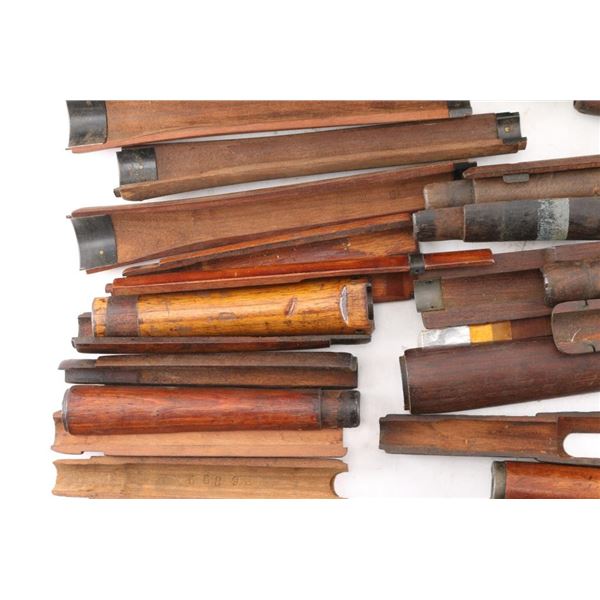 All wood, over 40 fore ends/hand guards, mostly for Mausers, some M1 Carbines and M1 Garand. Most in good condition.