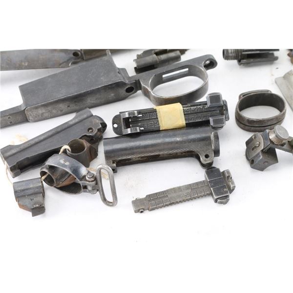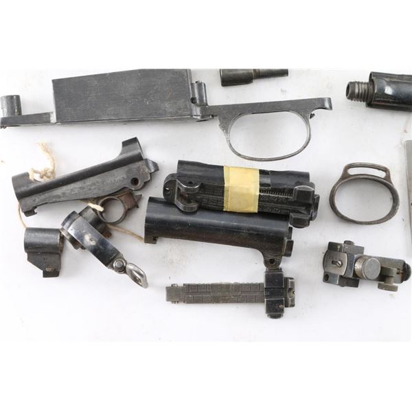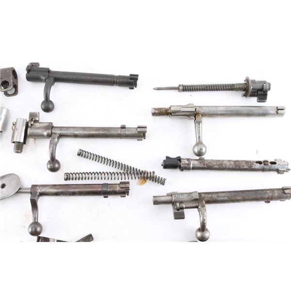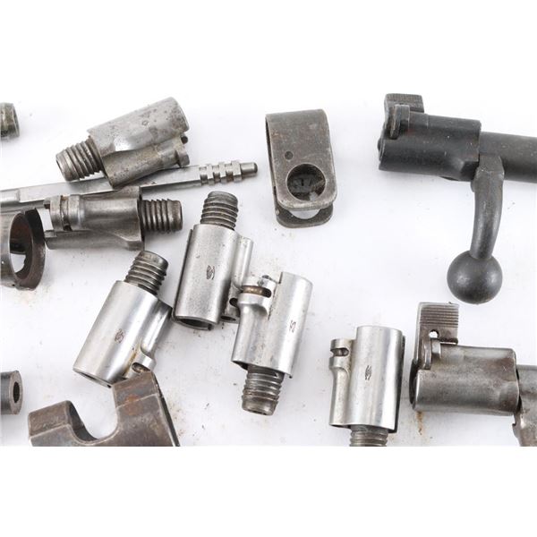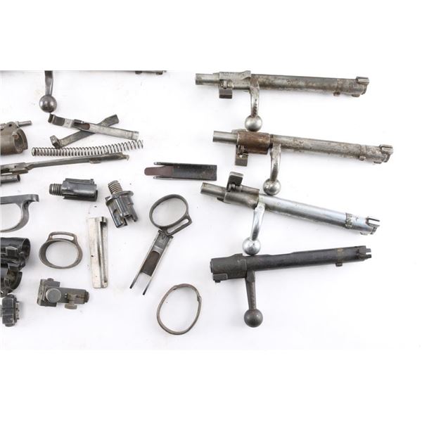 Includes Mauser bolts and others, bands, rear sights, butt plates, springs and more. Most are fair to good condition.
