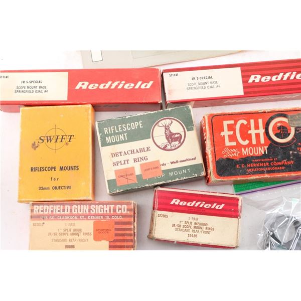 Includes (3)Redfield Intl Match metallic target sights, multiple rings and bases; (1)Ruger KD-71 rings for a Super Redhawk and other scope ring brands such as Weaver, Swift and Echo. Most in very good condition.