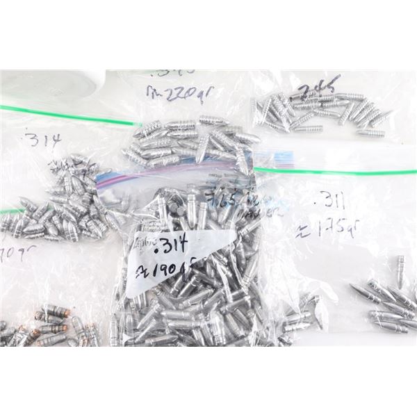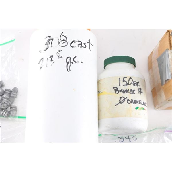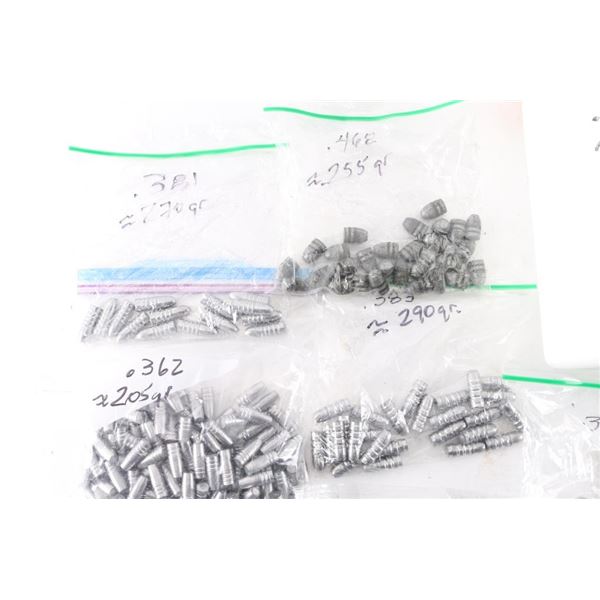 Approx. 1500 total. Includes .245 lead, .308 214 Gr. lead/copper, .311 Cal 175 Gr. Lead, .312 170 Gr. lead/copper, .314 various Grains, .345 220 Gr. lead, .362 205 Gr. lead, .381 270 Gr., .383 290 Gr., .451 310 Gr. and .468 255 Gr. Not loaded ammo.