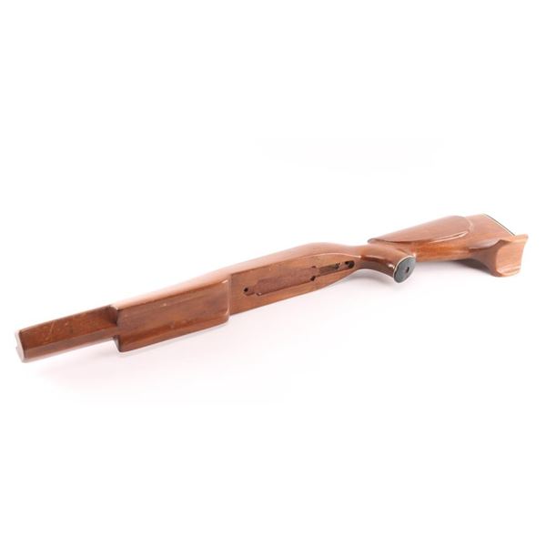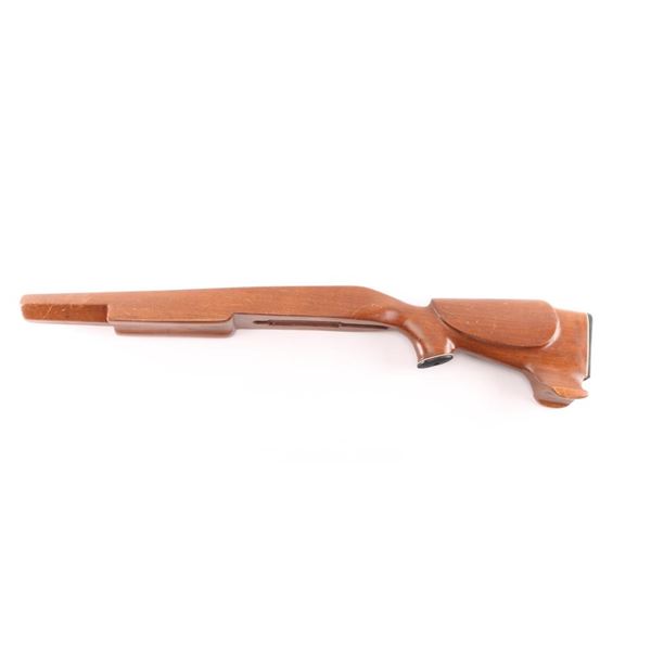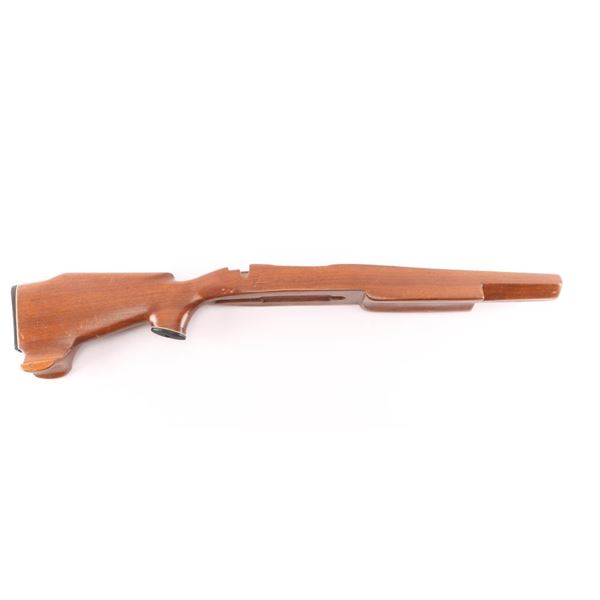 Vintage Waseca Herters custom benchrest stock fitted for a Remington 700. Factory black plastic buttplate and grip cap with white spacers, right-handed cheek rest, integral approximately 2" slots for rests on the underside of forearm and bottom of rear buttstock. Overall good/sound condition with many minor scratches.