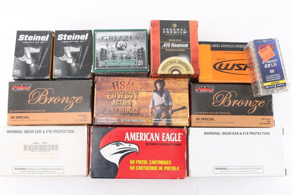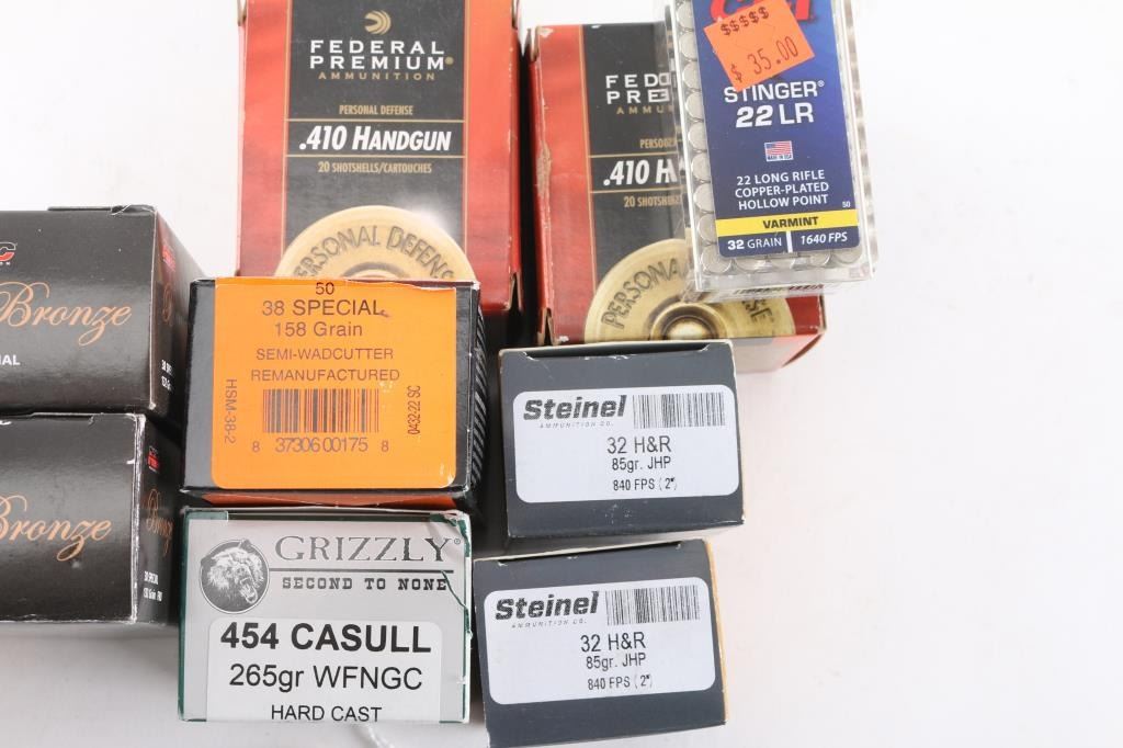 Includes: .38 SPL (250 rds); .32 H&R (40 rds); .454 Casull (20 rds); .22 LR (50 rds); .410 (33 shells).***Counts Are Approximate (+/-)***