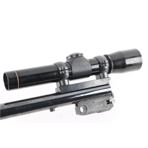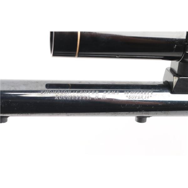 (1) - 30 Herrett SUPER 14" blued round barrel topped w/a 2 X 20 Leupold scope, excellent bore and strong rifling. Small scratch and pitting on the left rear of barrel. Scope is slightly dirty. Comes with front and rear sights.