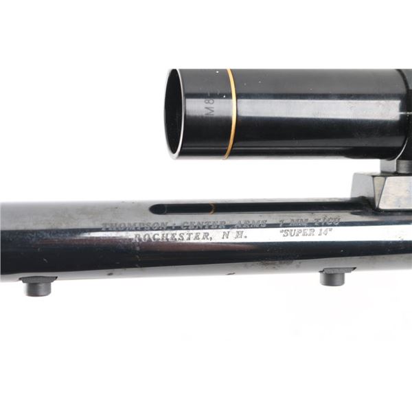 (1) - 7mm TICU Super 14 blued round barrel topped w/a 2 X 20 Leupold scope, excellent bore and strong rifling. Some pitting and scrapes on left side and top of barrel, scope is clear. Comes with front and rear sights.