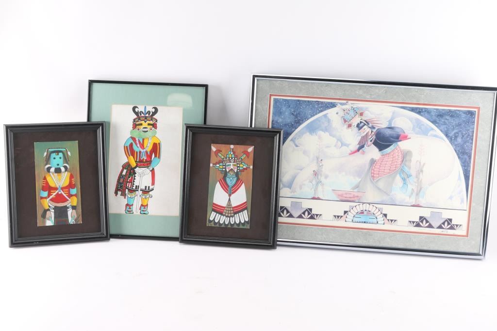 Lot 1958 Lot of 3 Watercolors & 1 Print