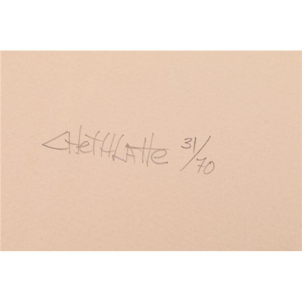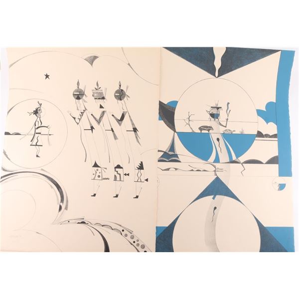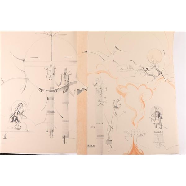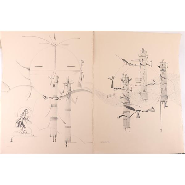 By David Chethlahe Paladin, unframed in portfolio. Navajo David Chethlahe Paladin’s visionary art contains ancient and archetypal symbolism derived from a universal source of mystical knowledge. David Paladin (1926-1984) was loved and respected by those who collected his art and those who knew him as a multi-faceted compassionate man.