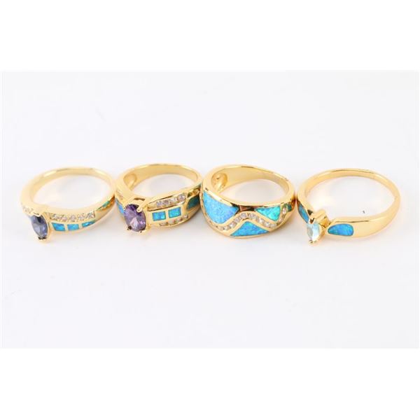 22K gold over sterling silver, with semi-precious stones. Sizes 6, 6 3/4, 8 and 9.