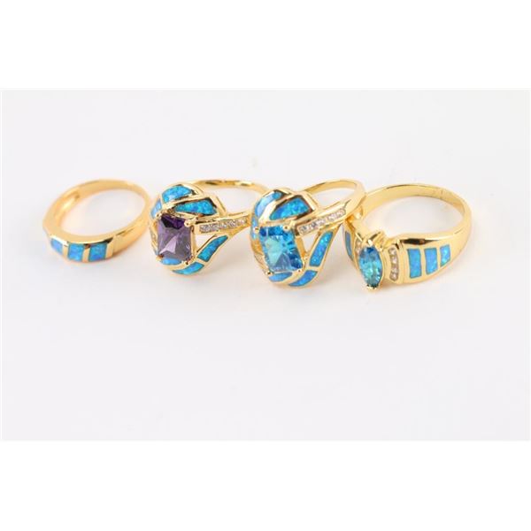 22K gold over sterling silver, with semi-precious stones. Sizes 6, two are 7 3/4, 8 1/2.