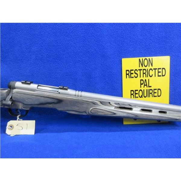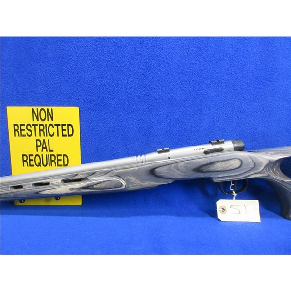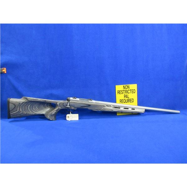 Non-Restricted - Savage Model B-Mag in 17 Win. Super Mag - This is a bolt action rifle with removable magazine has a beautiful laminated stock, is in very nice condition and action appears to be in very good working order. Heavy barrel is 22", rifling is good to very good, satin finished stainless steel is good to very good, has no sights but has Weaver style bases, laminated thumbhole stock is very good, rubber butt plate good, comes with swivel studs. Ser # K315096