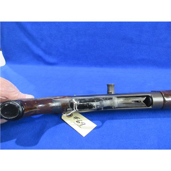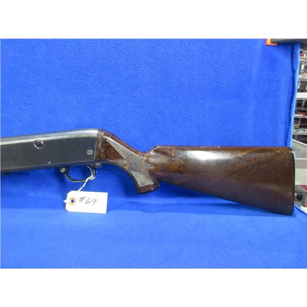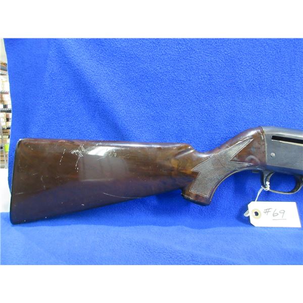 Non-Restricted - Stevens Model 124C in 12 Ga. 2 3/4" - This is a bolt action shotgun with 2 round internal magazine and action appears to be in working order but should be checked by a gunsmith before firing as the safety is not working properly. Barrel is 28", bore is good to very good, bluing is turning grey with some light pitting, has bead front sight, synthetic stock has a crack repair in the wrist area, forearm is good with usage marks, butt plate good. Ser # None