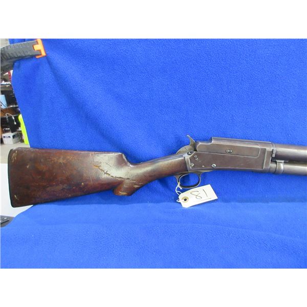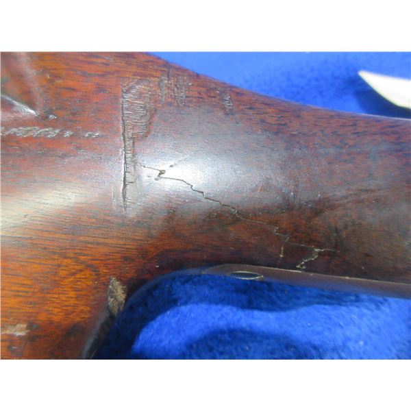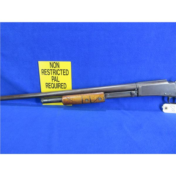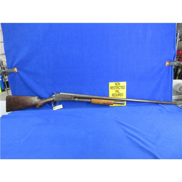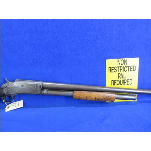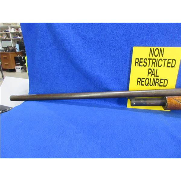 Non-Restricted - Marlin Model No. 19 in 12 Ga. 2 3/4" - This is a take down pump action hammer shotgun, action appears to be in working order but barrel to action has some play. Barrel is 32", bore is fair to good with some pitting, bluing is turning brown, has bead front sight, stock has a crack on left side in the wrist area, forearm has a 1/2" crack on left side at the front and has been replaced, butt plate has a chip at the heel. Ser # 92200