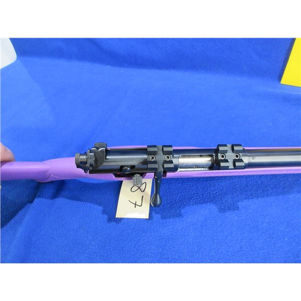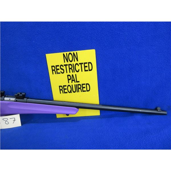 Non-Restricted - Savage Rascal in 22 S/L/LR - This is a single shot bolt action rifle with Accu-Trigger, action appears to be in very good working order. Barrel is 16", rifling is very good, bluing is good to very good, has both sights and Weaver style bases, purple synthetic stock is good to very good, butt plate good, comes with swivel studs. Ser # 4124028