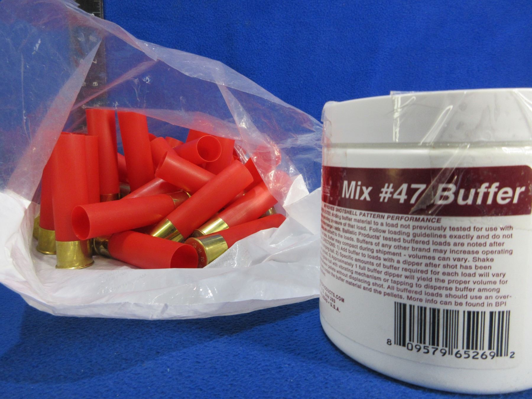 Ballistic Products Mix # 47 Buffer (Appears Full) & 10 Ga. Primed Shotshell Hulls (Cheddite 3 1/2" Bag of 49) - Shipping by UPS Only
