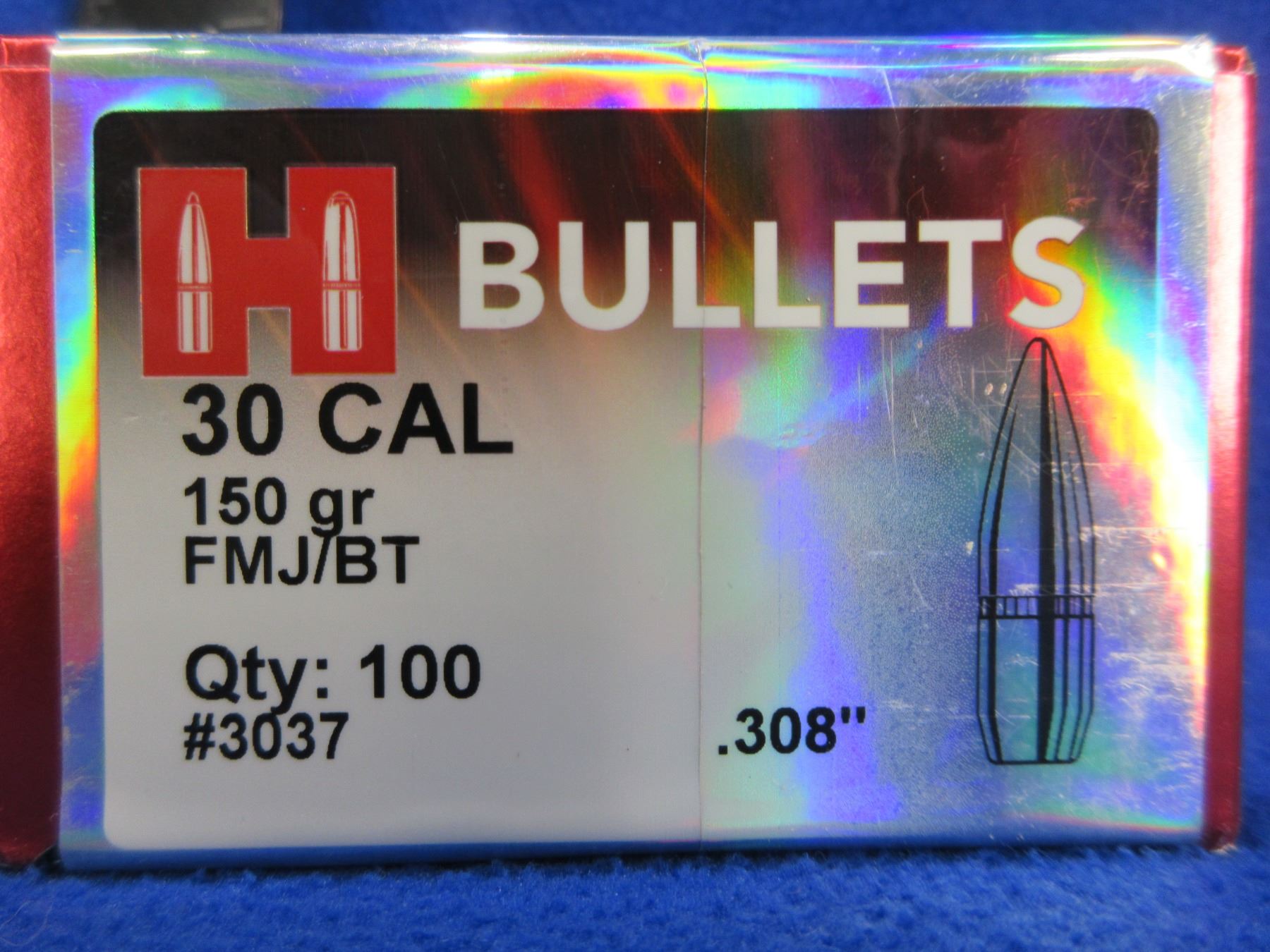 NEW - 30 Cal. .308" 150gr FMJ BT Hornady Bullets - Box of 100