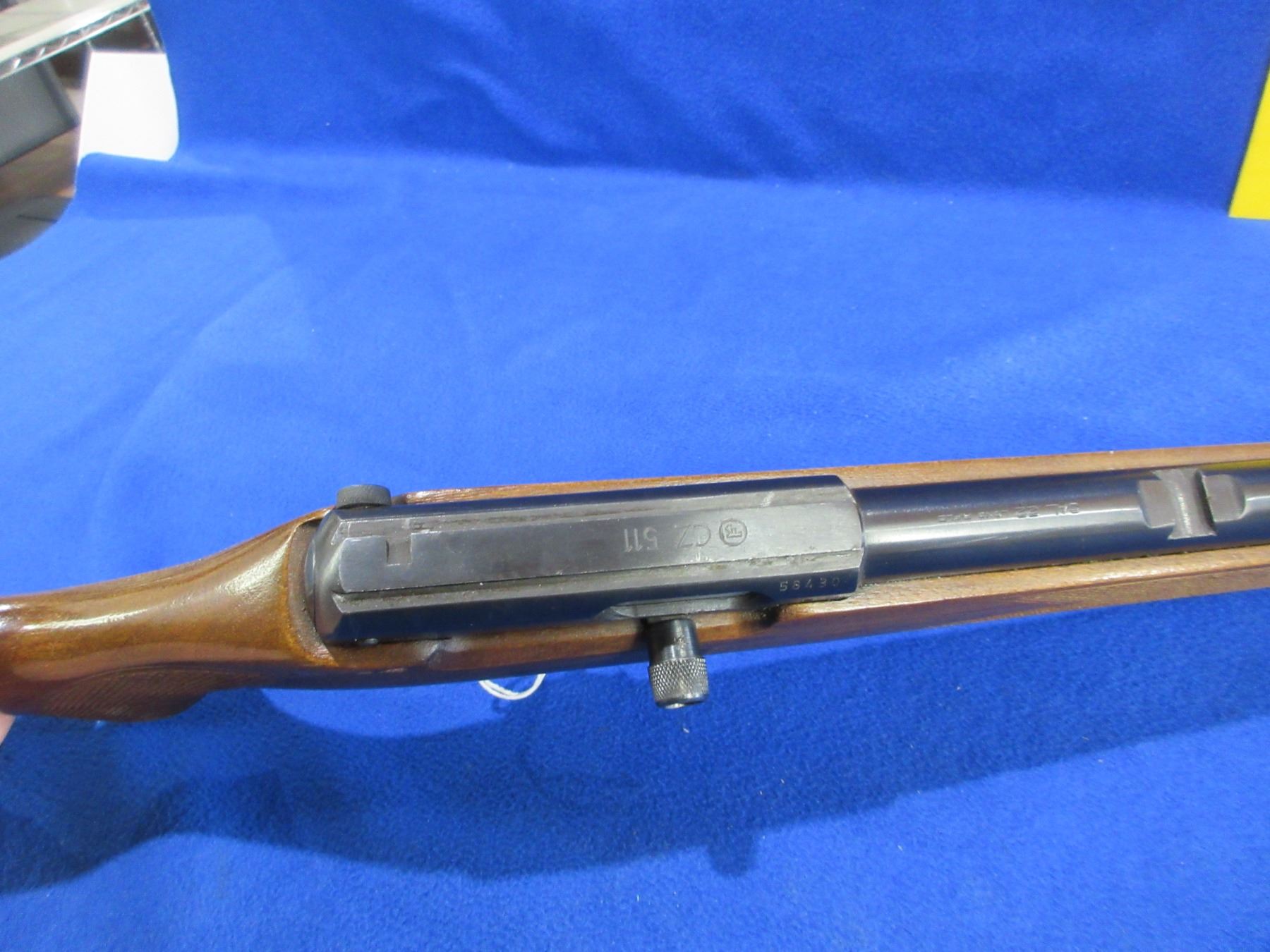 Non-Restricted - CZ Model 511 in 22 LR - This is a semi-auto rifle with removable magazine (magazine missing), action appears to be in good to very good working order. Threaded barrel is 22 1/4" - thread cap missing, rifling is good to very good, bluing is good, sights are missing but has integral .22 rail, stock is good with usage marks, butt plate good, comes with rear swivel, front swivel missing. Ser # 58430