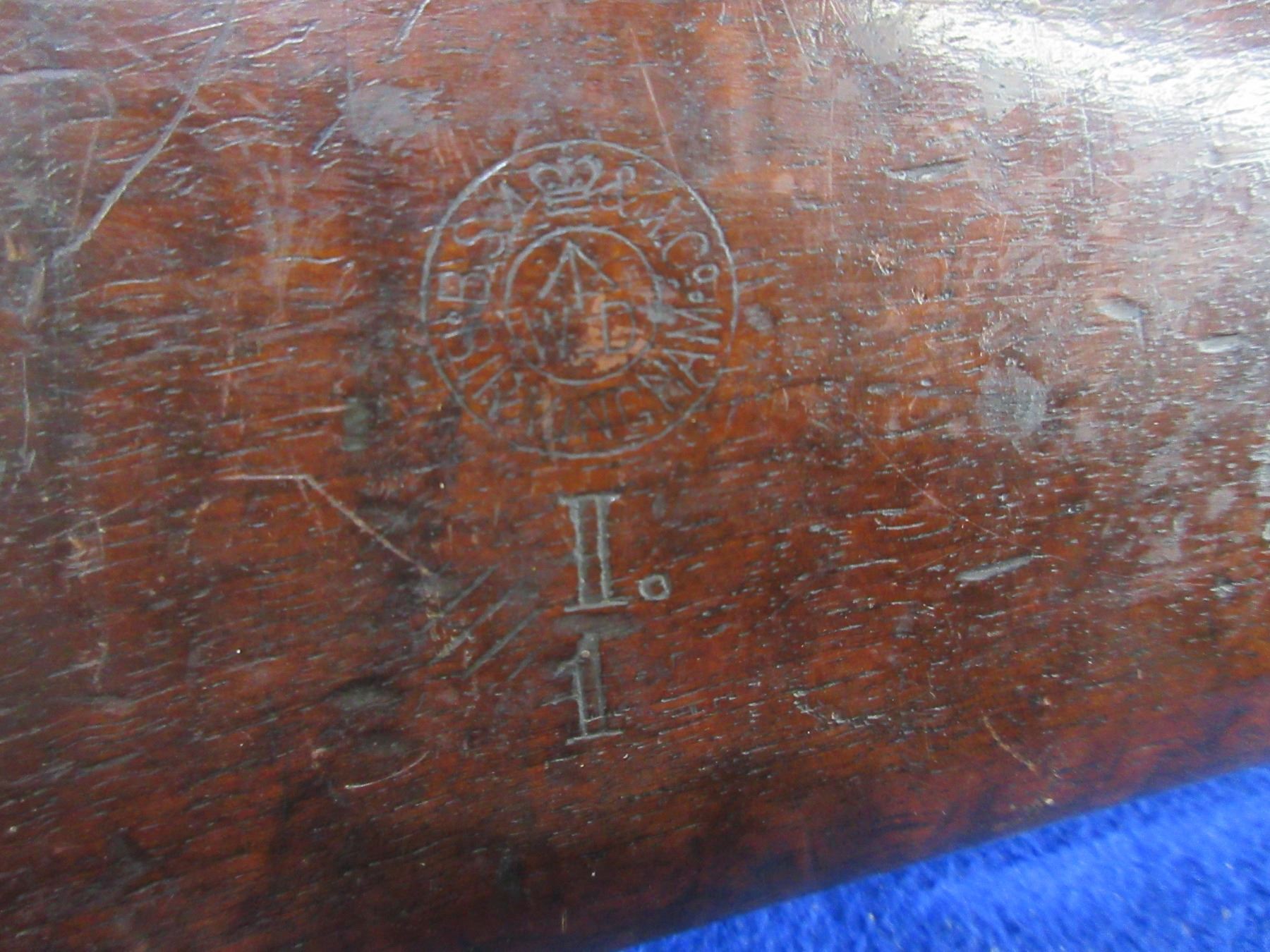 Stock Only - Lee Enfield Wood Stock w/ Long Lee Brass Butt Plate - Stock Stamped "BSA & Co. Birmingham with WD and Broad Arrow", Long Lee Brass Butt plate is stamped with WD and Broad Arrow also