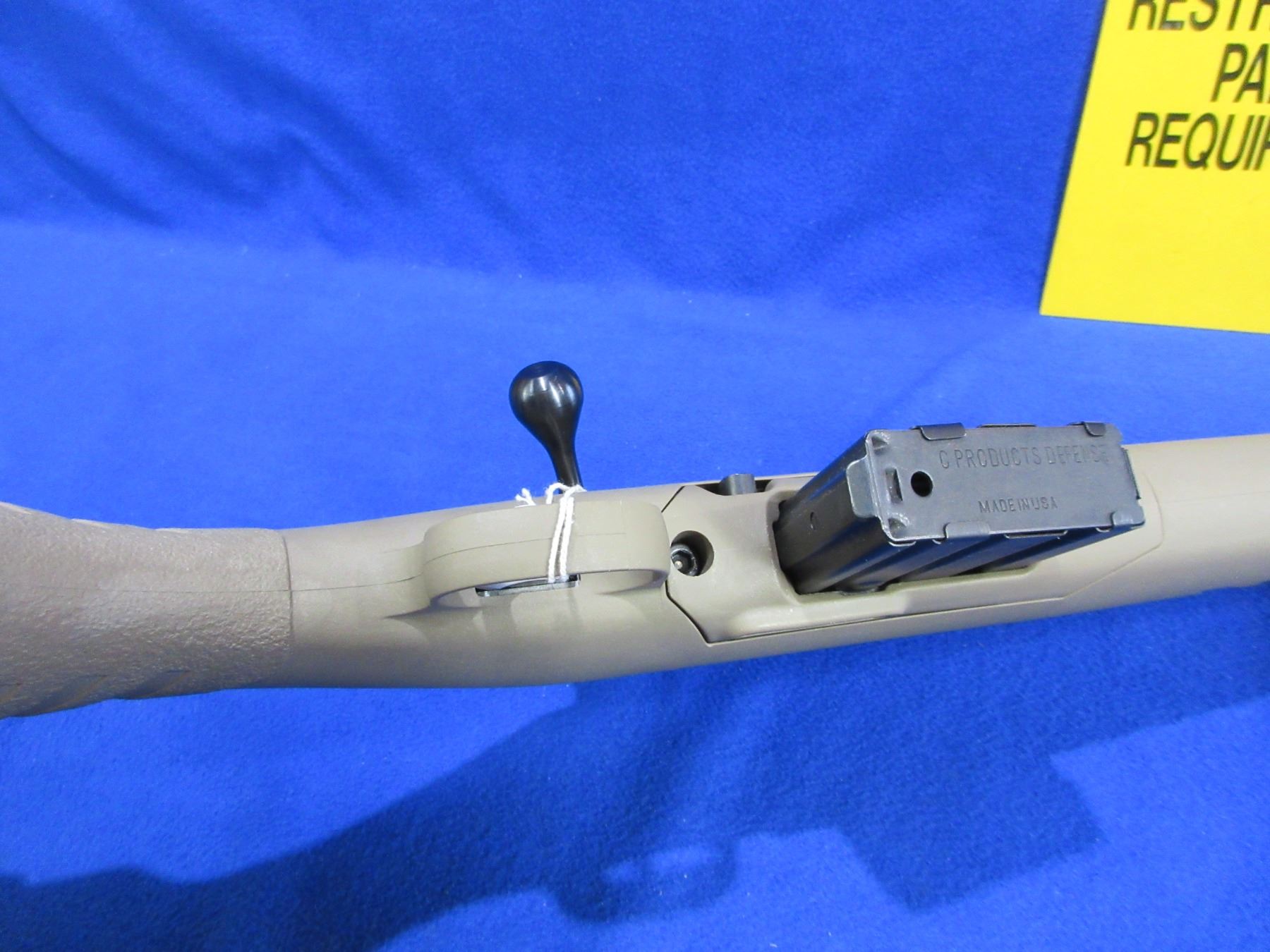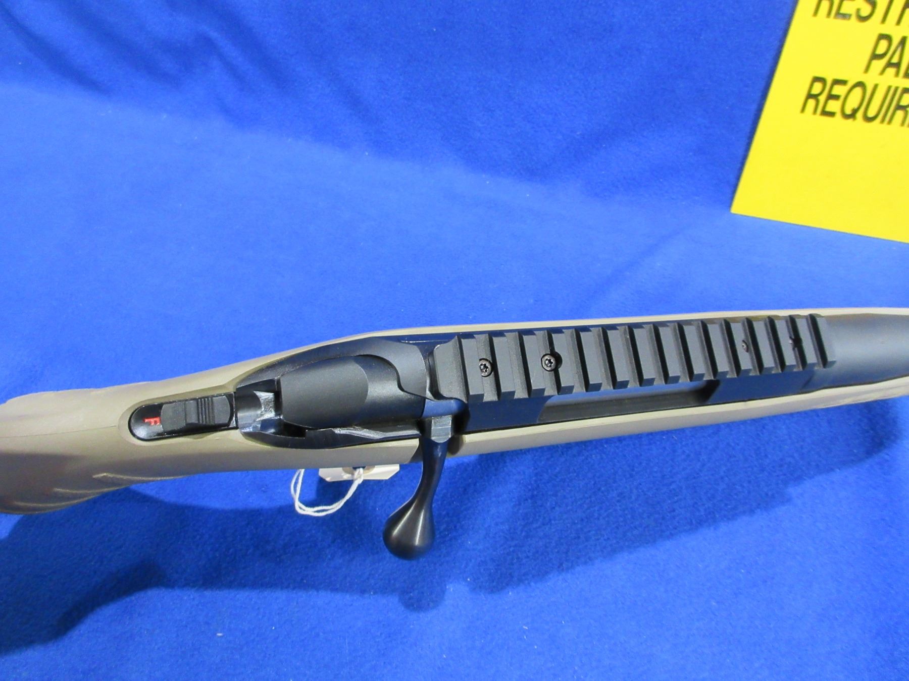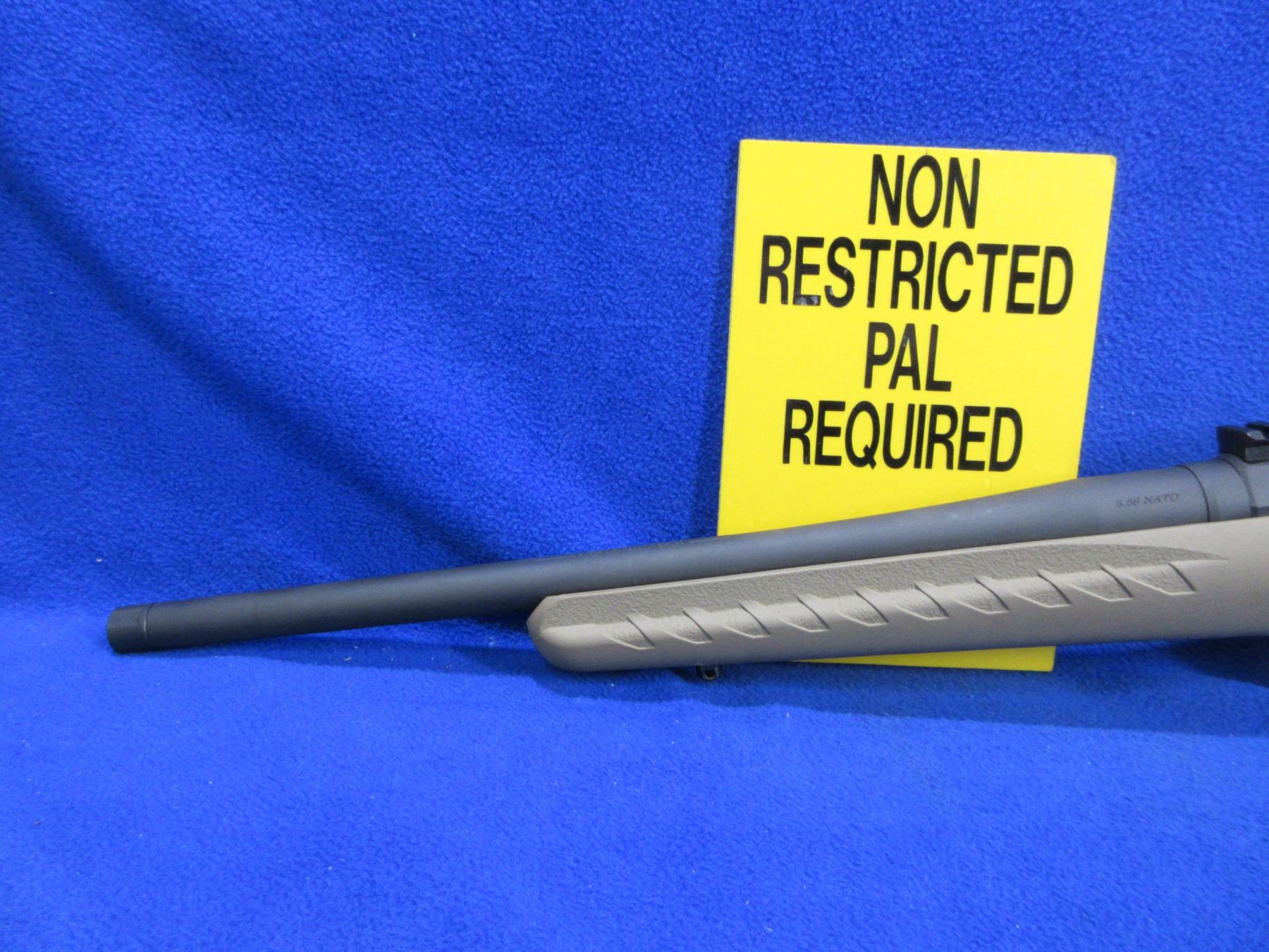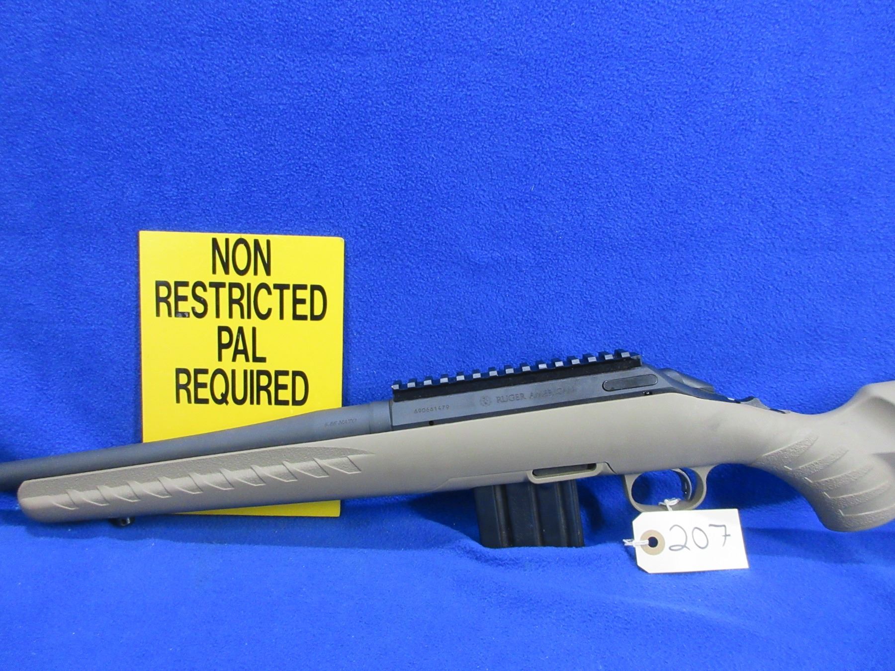 Non-Restricted - Ruger American in 5.56 NATO - This is a bolt action rifle with removable magazine, Ruger Marksman adjustable trigger, action appears to be in very good working order. Barrel is 16", rifling is very good, black finish is good to very good, has no sights but has picatinny rail, synthetic stock is good to very good, rubber recoil pad good, comes with swivel studs. Ser #690661479