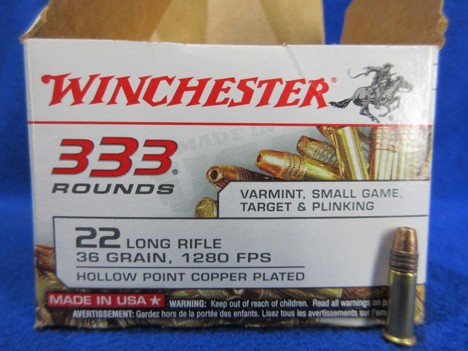 22 LR 36gr HP Copper Plated (Pick Up or Ship by UPS Only) Winchester Cartridges - Box of 333