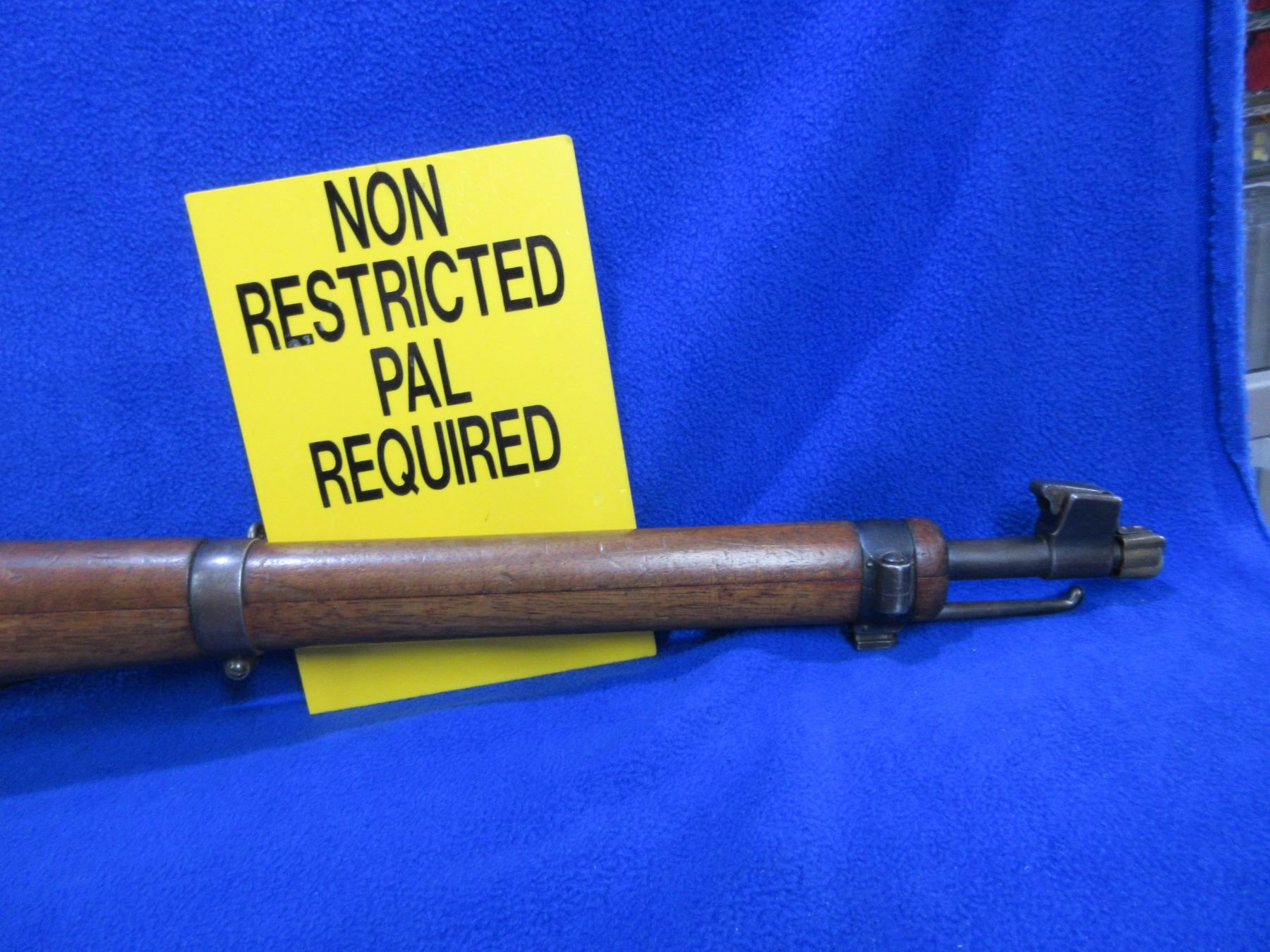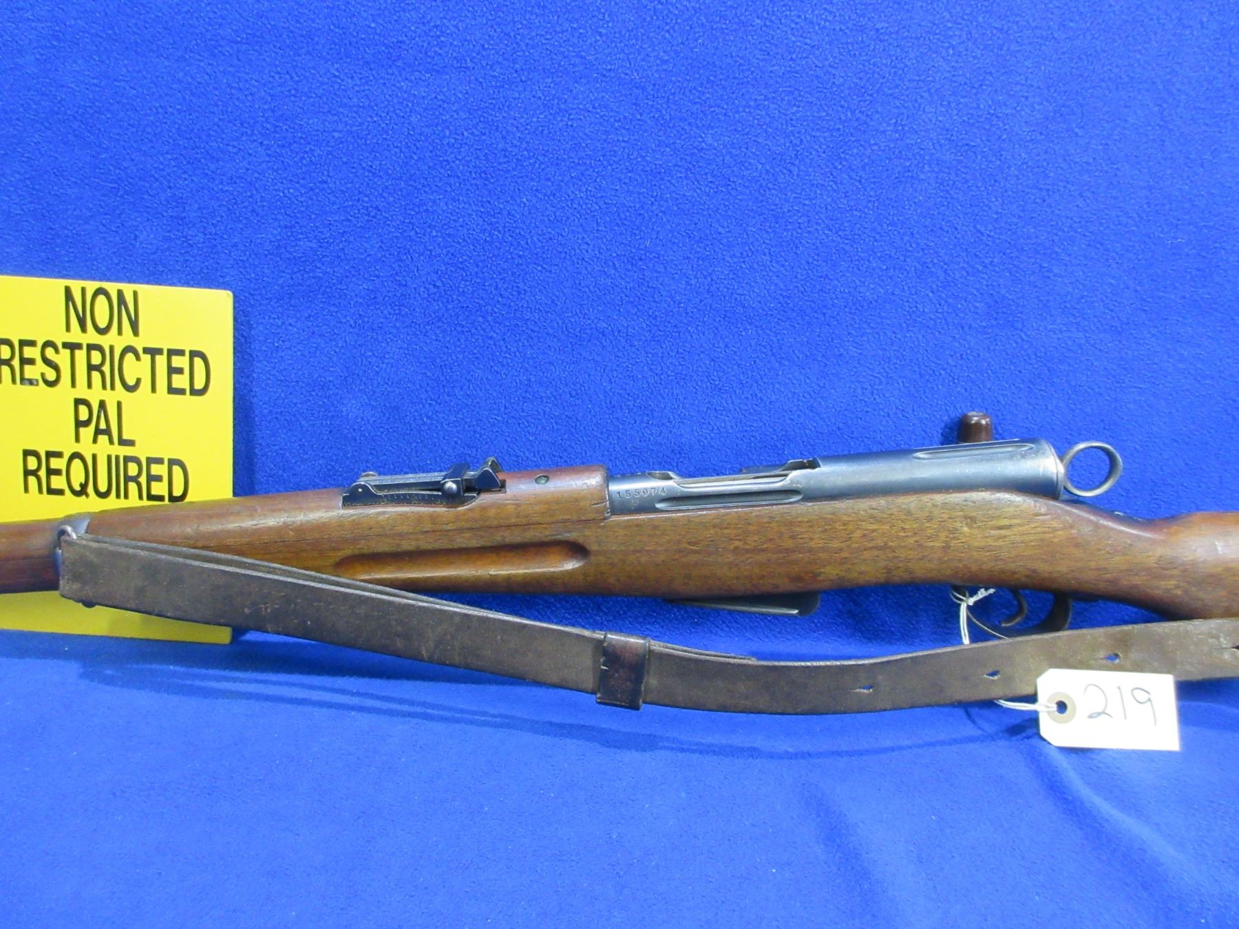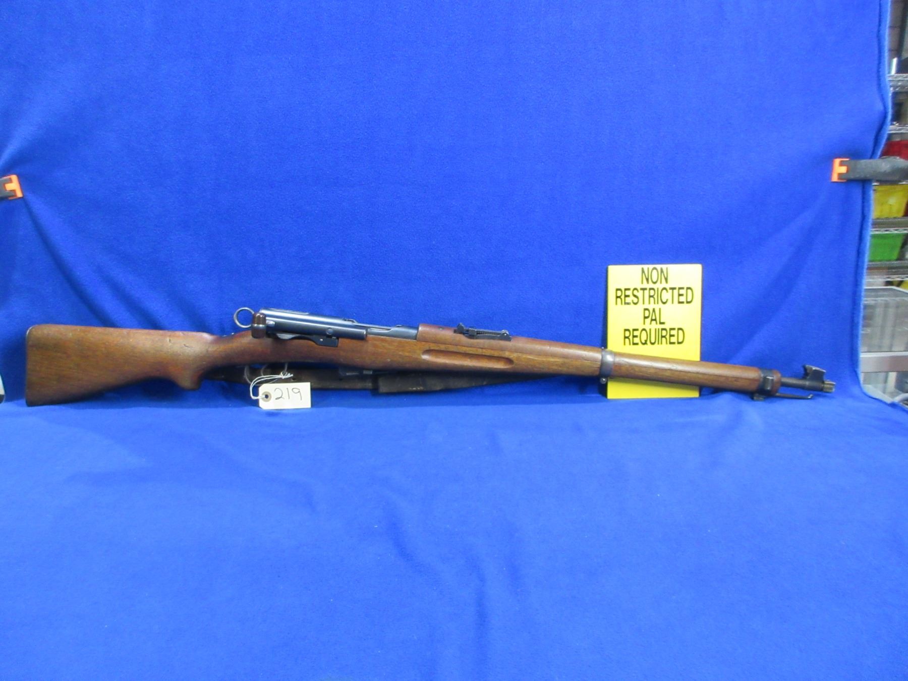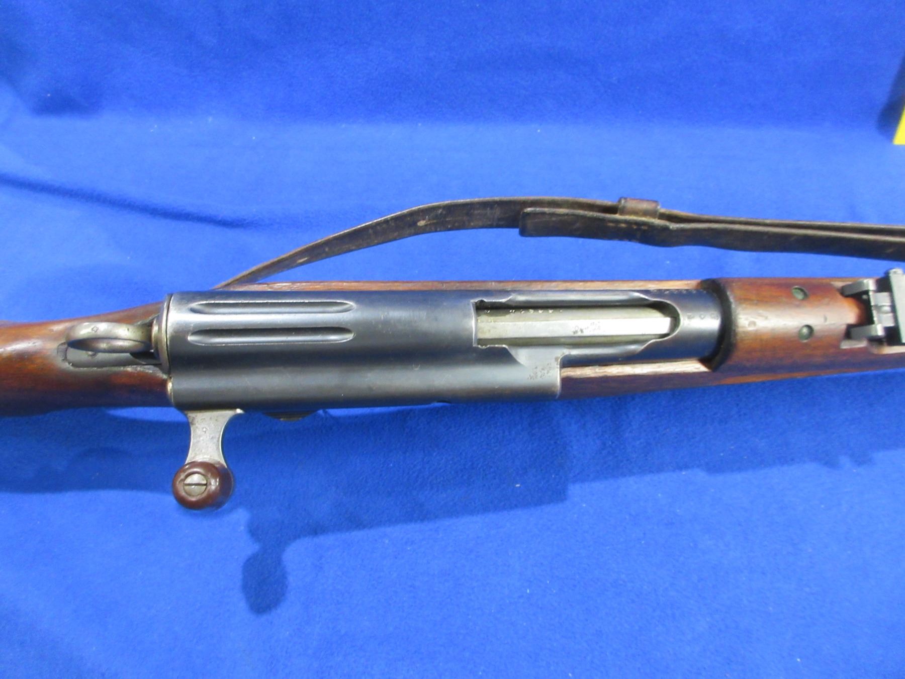 Non-Restricted - Schmidt Rubin Model K11 in 7.5X55 Swiss - This is a straight pull bolt action rifle with removable magazine, action appears to be in good working order. Barrel is 23 1/4", rifling is good to very good, bluing is good for age with wear spots, has both sights, full wood stock is good for age with usage marks, metal butt plate good, comes with swivels, strap and muzzle cap. Bolt, action and front sight are numbers matching. Ser # 155974