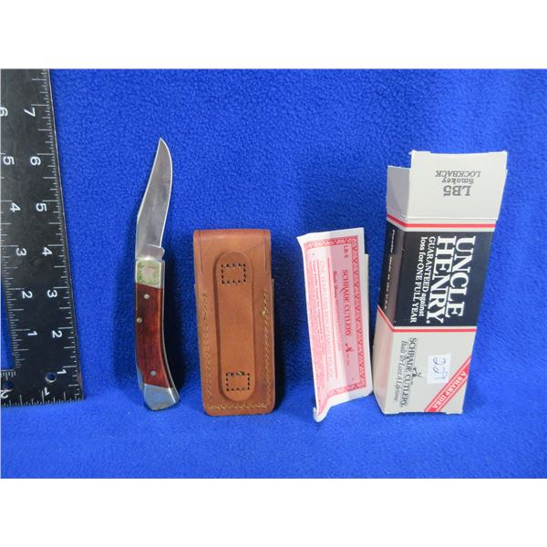 Schrade Uncle Henry LB5 Smokey Lockback Folding Blade Knife with Leather Sheath and Original Box