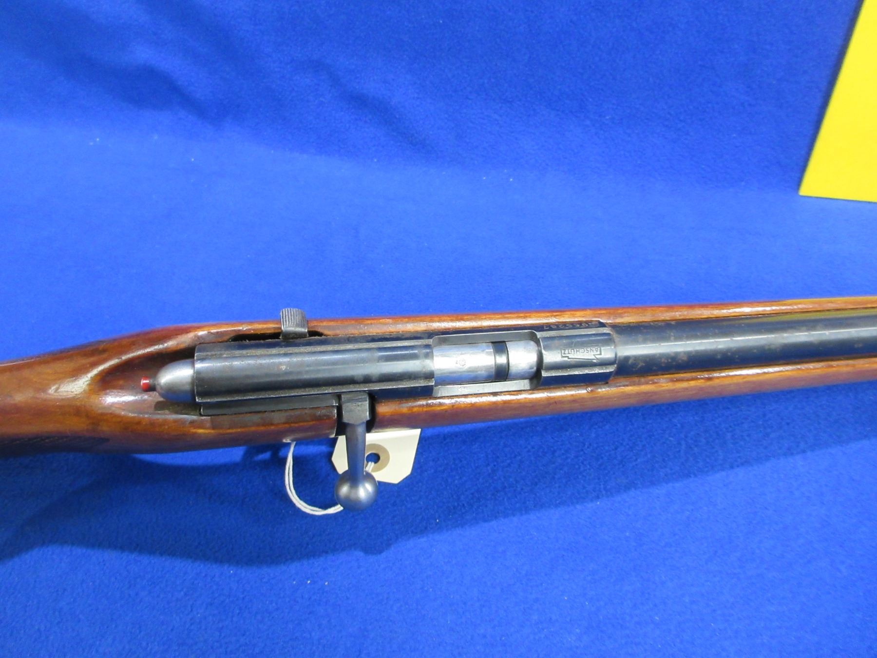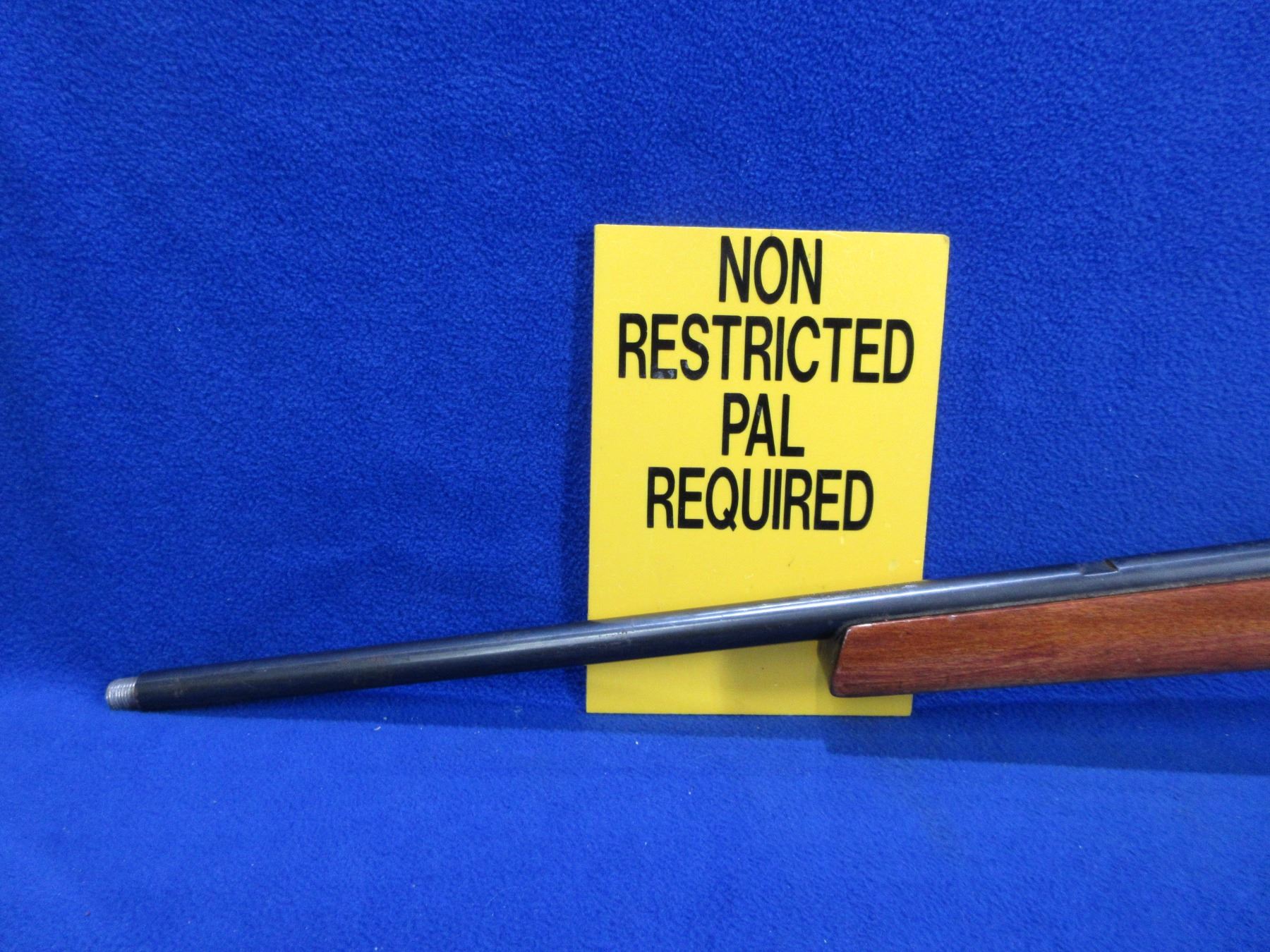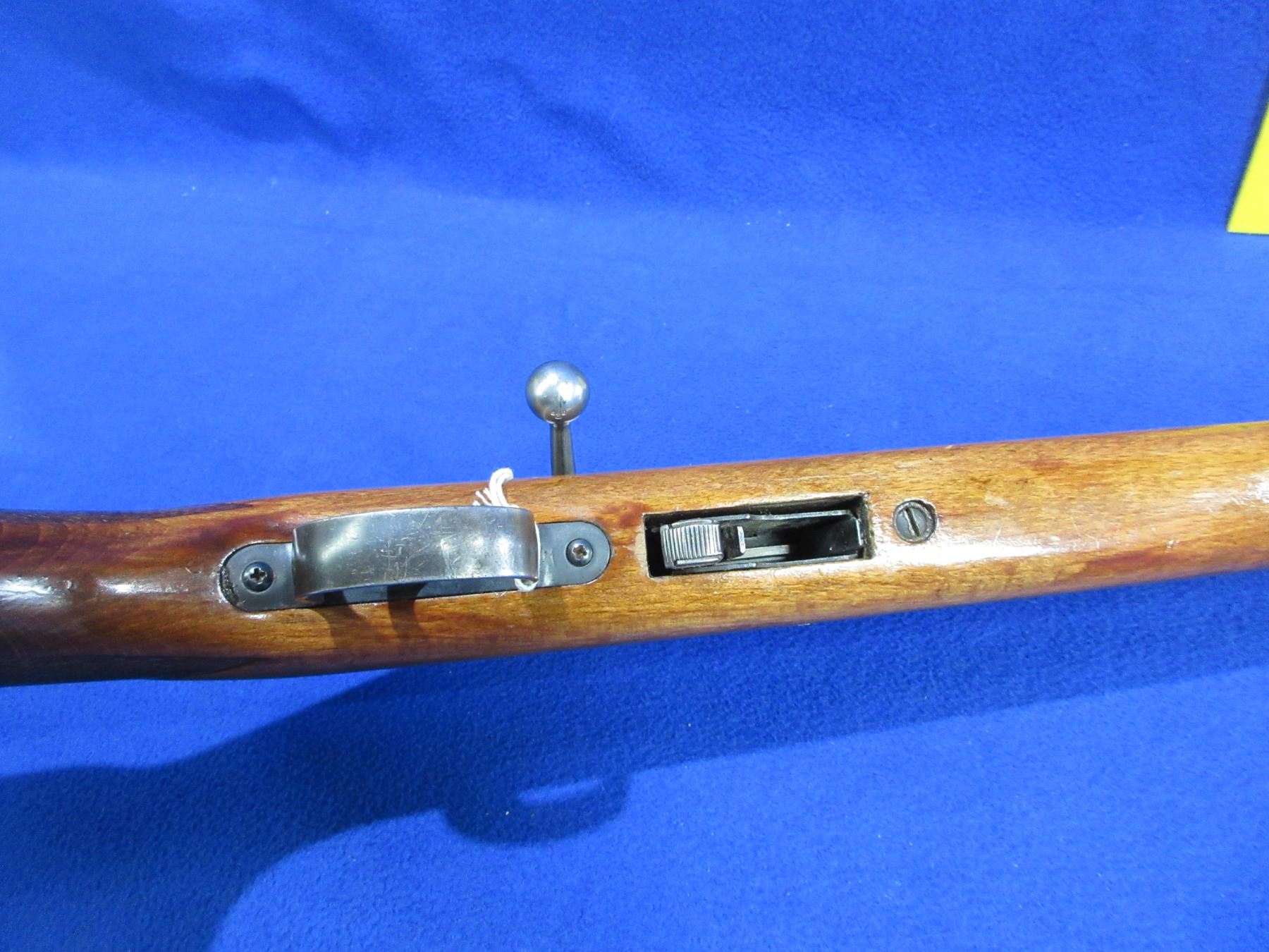Non-Restricted - Anschutz Model 1400/40 in 22 LR - This is a bolt action rifle with removable magazine (magazine missing), action appears to be in good to very good working order. Threaded barrel is 20 3/4" - thread cap missing, rifling is good to very good, bluing has some rust and pitting, sights missing but has integral .22 base, stock is good with usage marks and has been refinished, butt plate good, swivel studs missing. Ser #955287