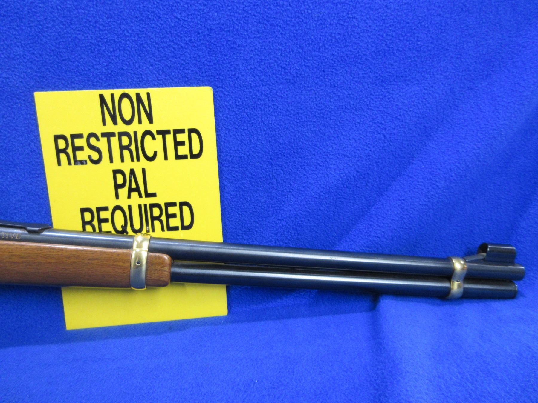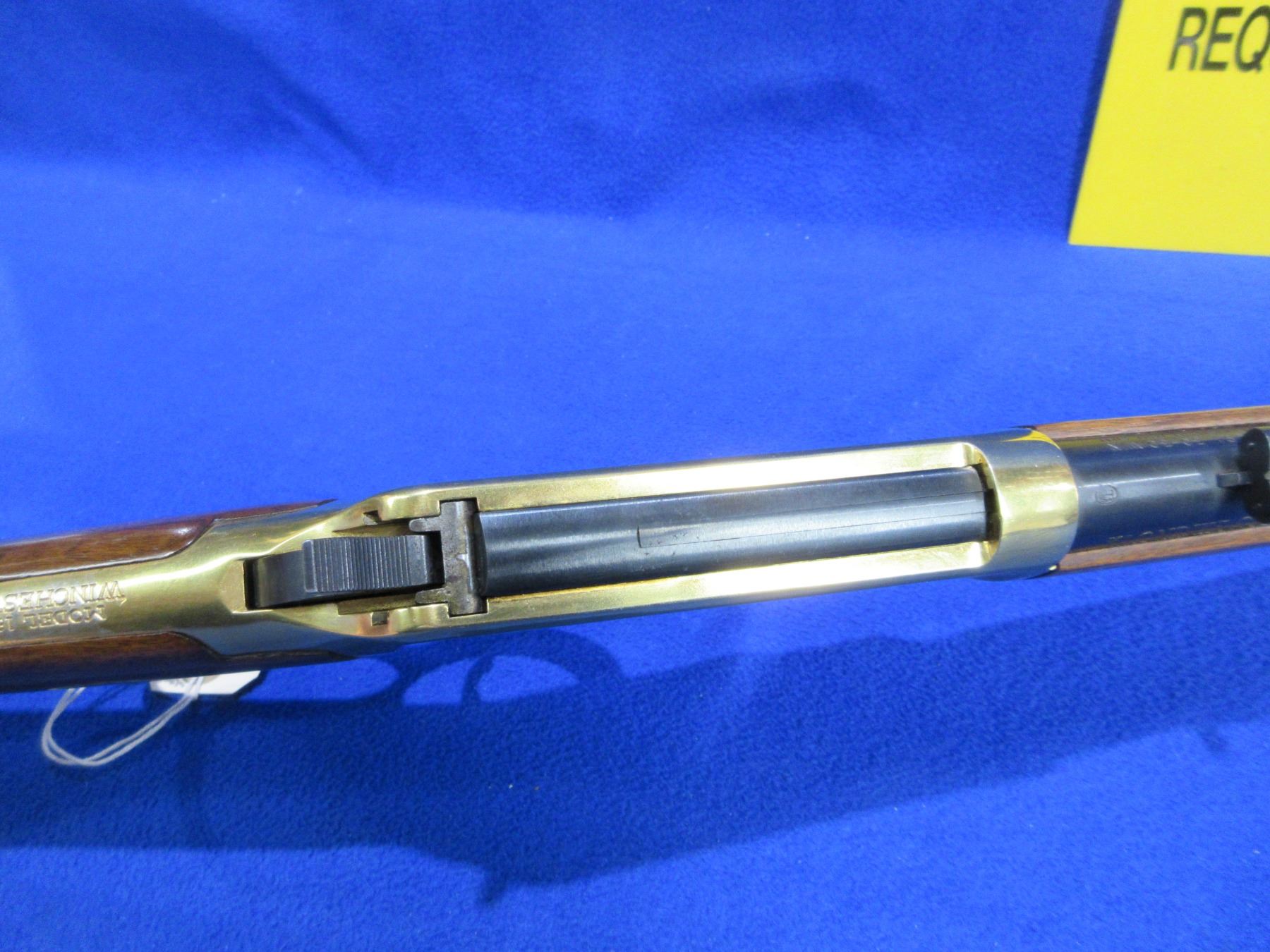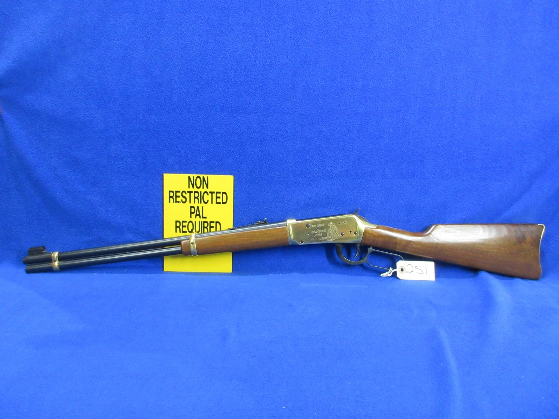 Non-Restricted - Winchester Model 94 in 30-30 Win - This is a Klondike Commemorative lever action rifle with tube magazine, action appears to be in never fired condition. Barrel is 20", rifling is very good, bluing is good with some very light pitting on top of the barrel, action has some speckling on the left side, has both sights, stock and forearm are good to very good with some handling marks, brass furniture and butt plate good to very good. Ser #KGR7910