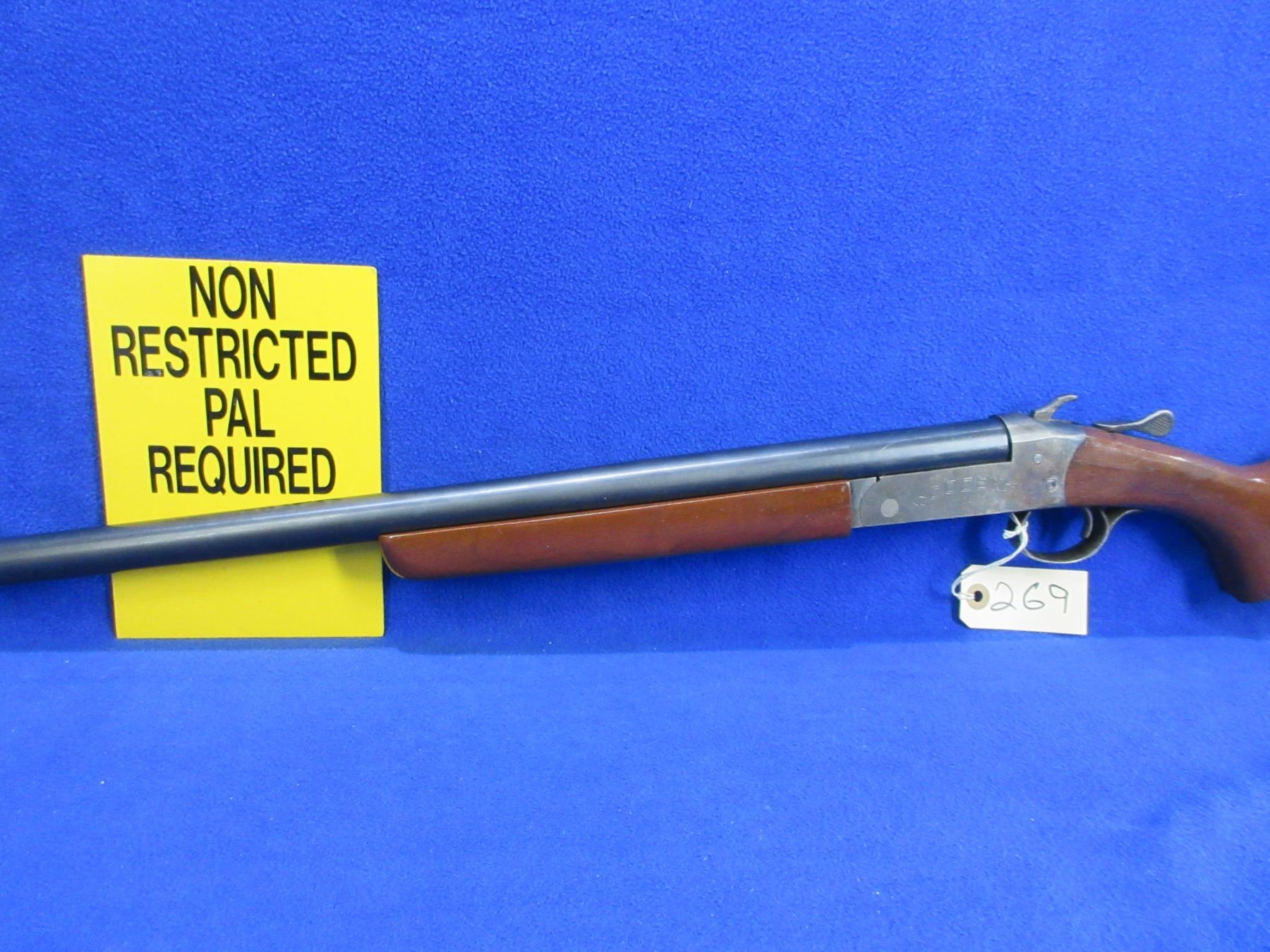 Non-Restricted - Cooey Model 84 in 12 Ga. 2 3/4" Full - This is a tip up single shot shotgun, action is tight and appears to be in good to very good working order. Barrel is 30", bore is good to very good, bluing is good to very good, has fiber optic front sight, stock is good with usage marks and a chip in the wrist cap area, forearm is good with usage marks, butt plate missing. Ser # 55660