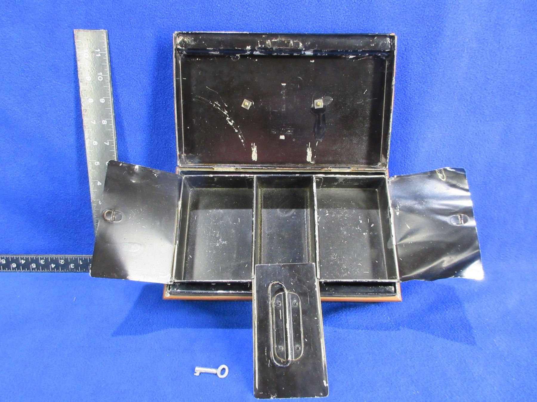 Vintage Tin Cash Box with Removable Tray and 1 Key
