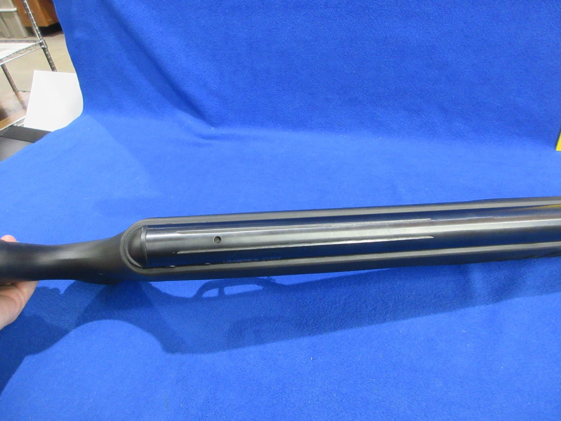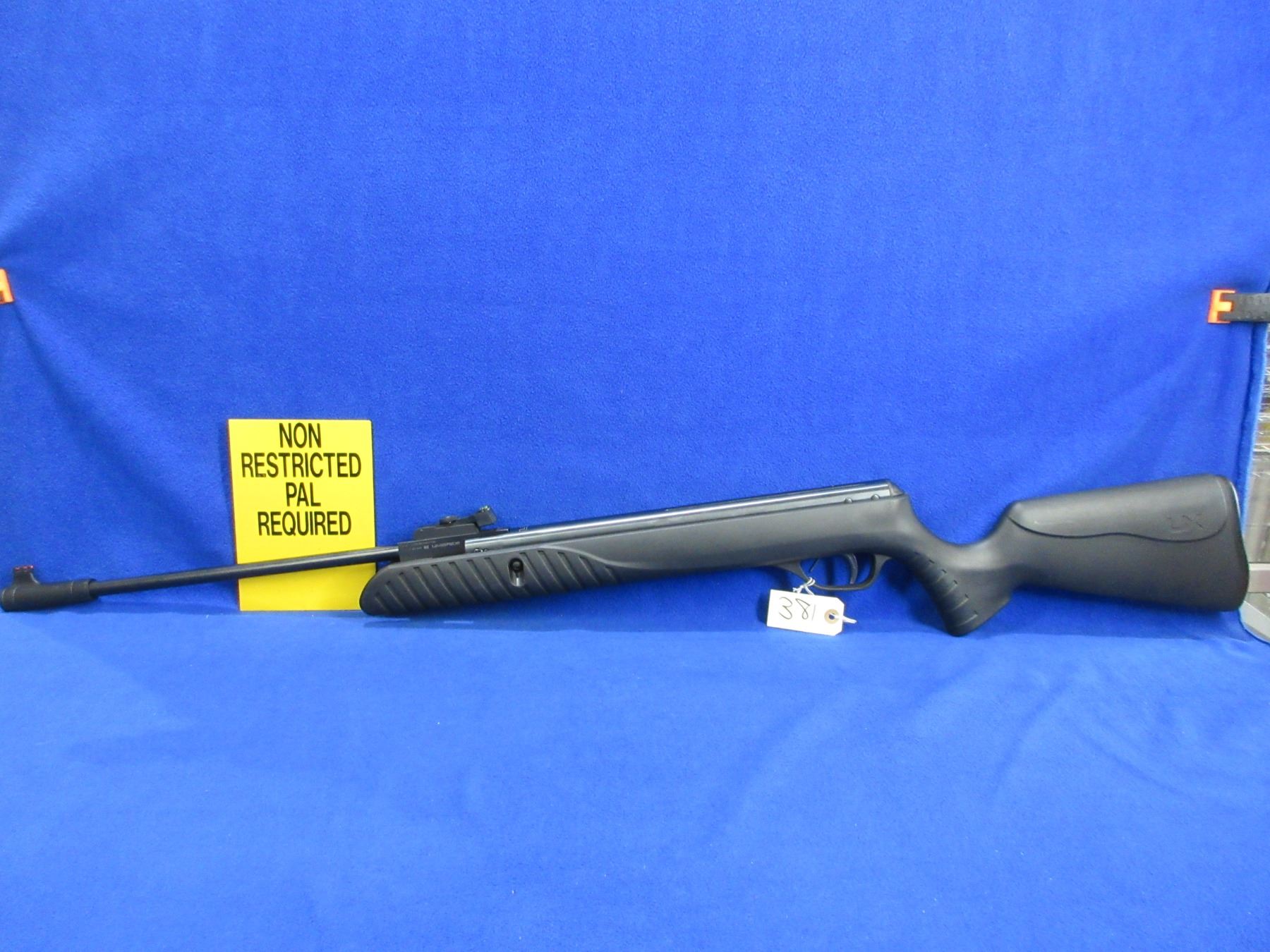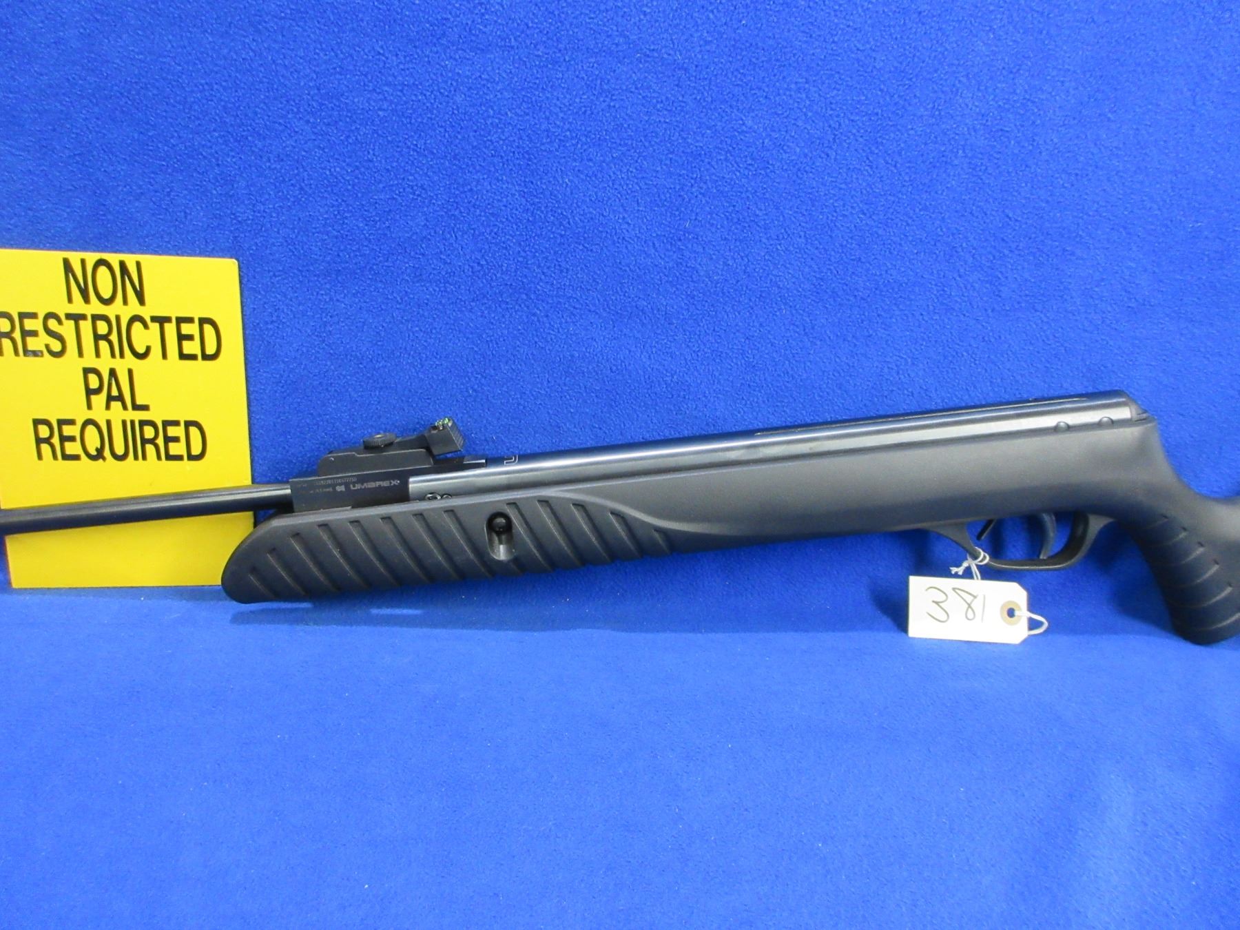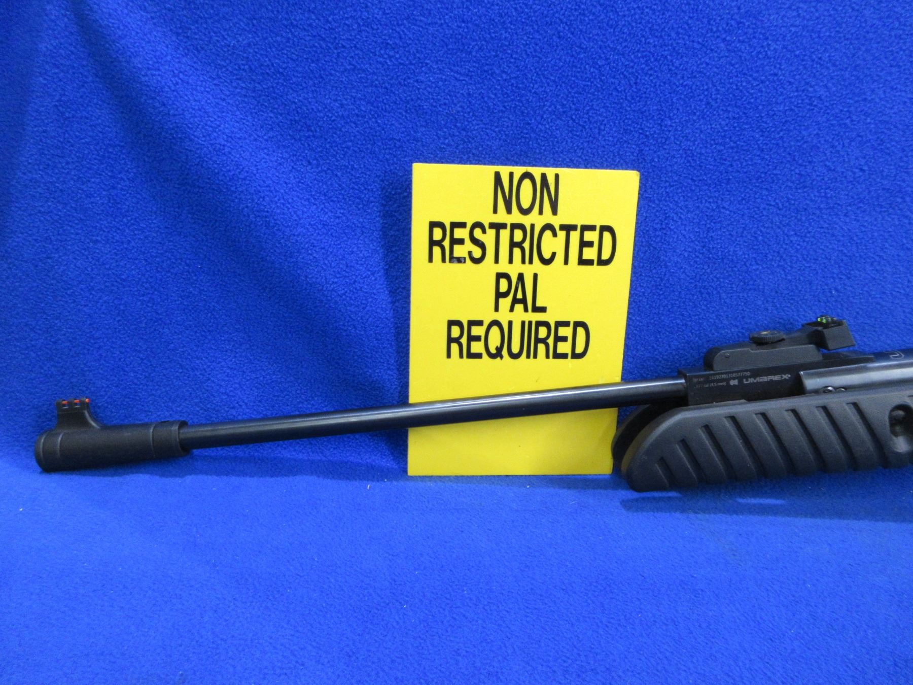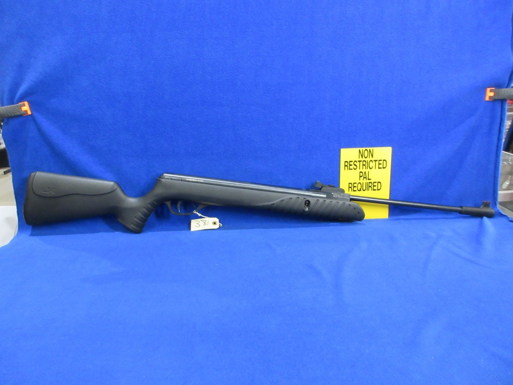 Non-Restricted - Umarex Model UX Syrix Air Rifle in .177 Cal. - 574 fps - This is a break barrel TNT Gas Piston single shot air rifle, action appears to be in very good working order. Barrel is 18 3/4", rifling is good to very good, bluing is good to very good, has both fiber optic sights, synthetic stock is good to very good, butt plate good. Ser # 1619220131057775D