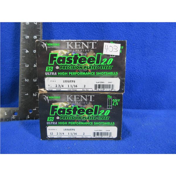 12 Ga. 2 3/4" 2 Shot (Pick Up or Ship by UPS Only) Kent Fasteel 2.0 Shotshells - 2 Boxes of 25