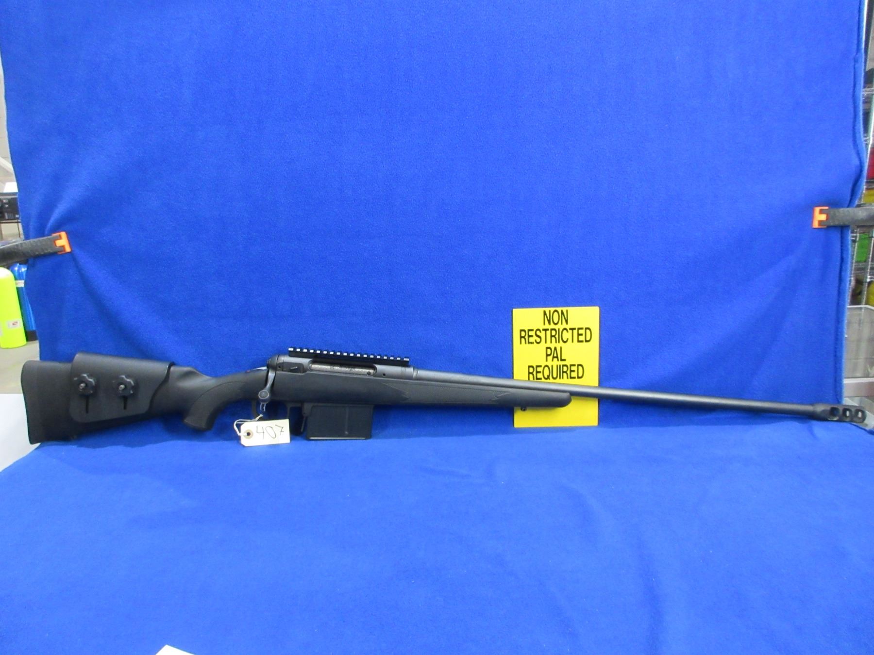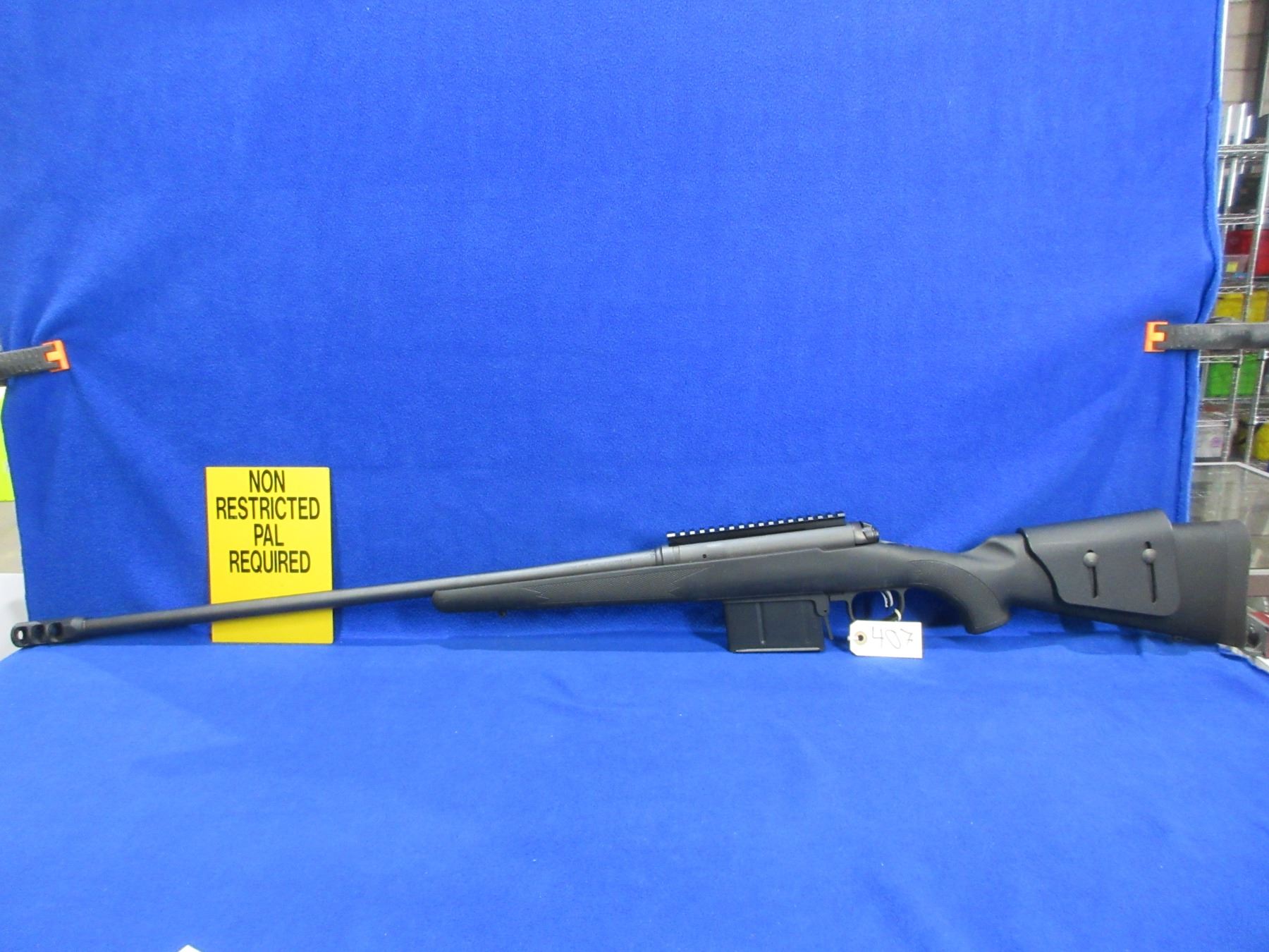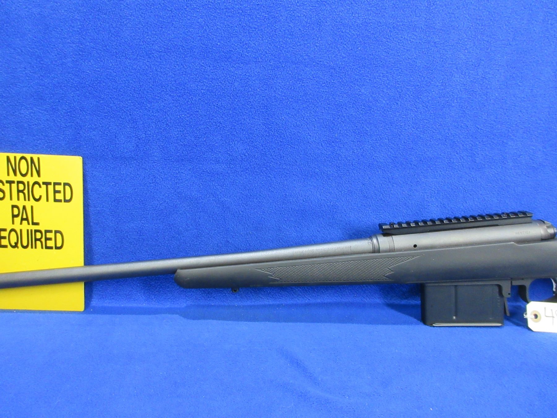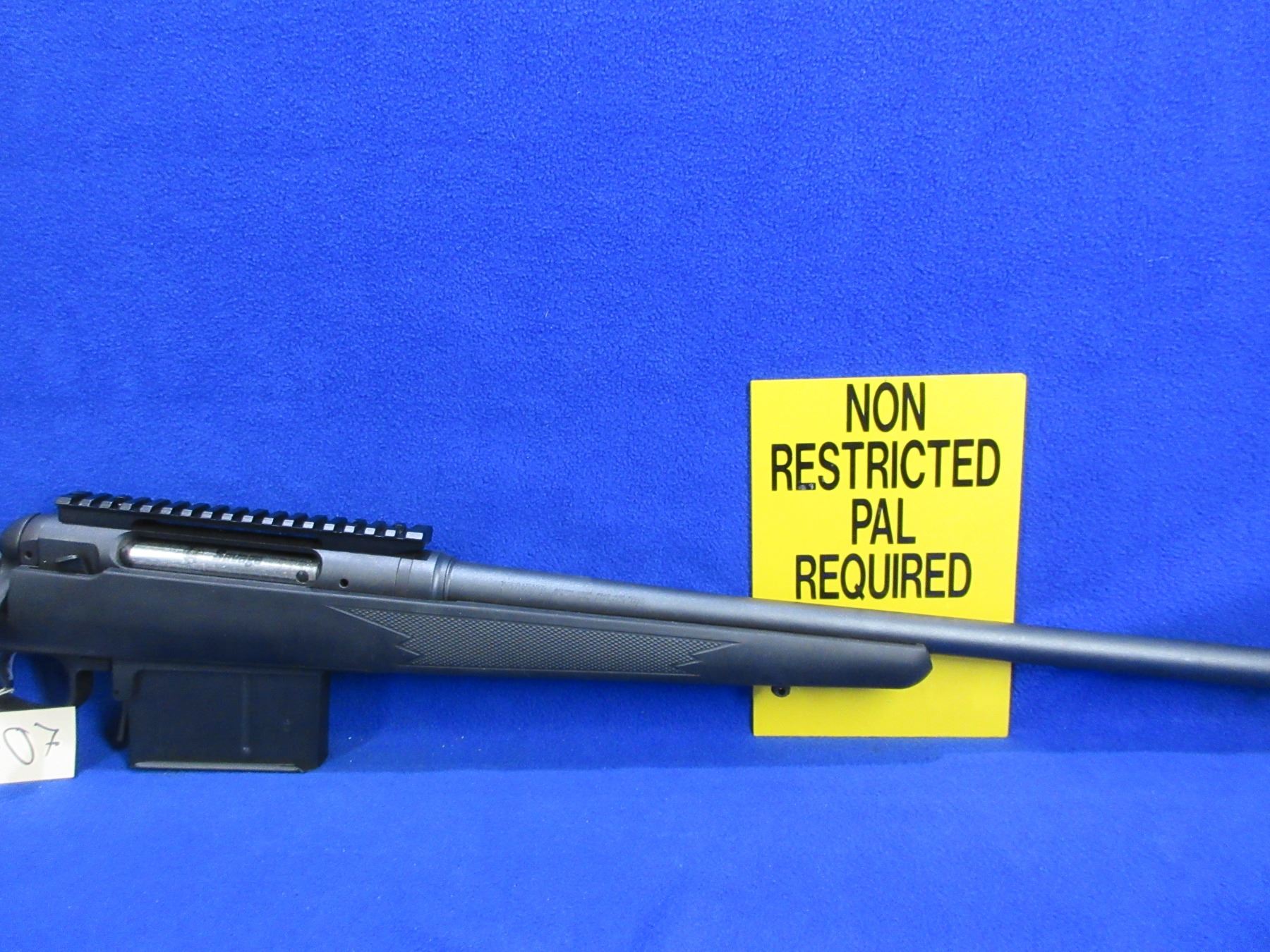 Non-Restricted - Savage Model 111 in 338 Lapua - This rifle is in very nice overall condition, it is a bolt action rifle with Accu-Trigger and removable magazine, action appears to be in very good working order. Barrel is 26", rifling is very good, black finish is good to very good, has no sights but has picatinny rail, synthetic stock is good to very good, rubber recoil pad good, comes with adjustable cheek riser, muzzle brake and swivel studs. Ser #H697101