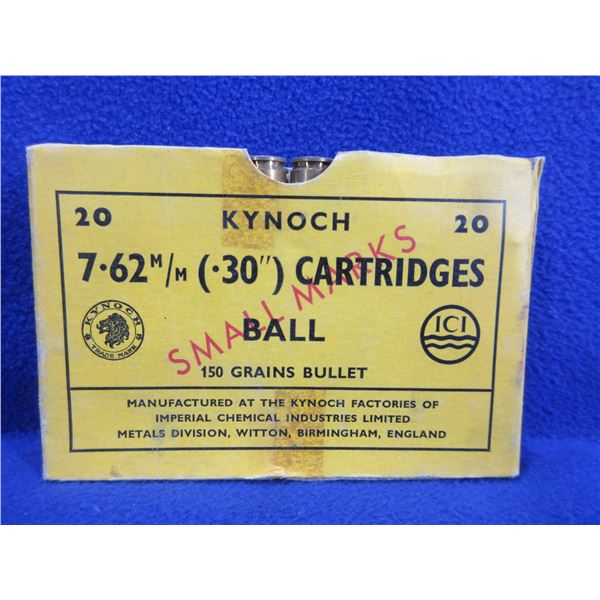 Collector Ammo - 7.62MM (30-06), .30" 150gr, (Pick Up or Ship by UPS Only) Kynoch Ball Cartridges - Box of 14 + 5 Brass