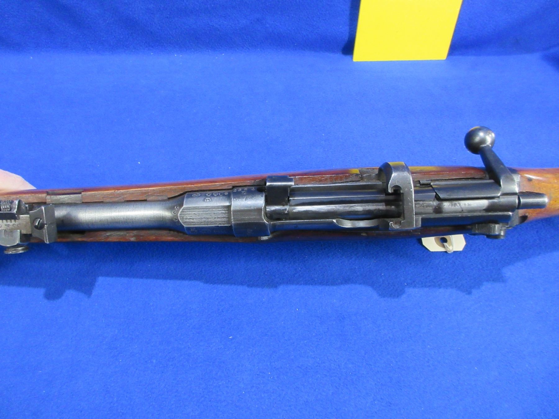 Non-Restricted - Lee Enfield SHTLE III in 303 British - Marked Crown over GR Enfield 1919 - This is a bolt action rifle with removable magazine, action appears to be in good to very good working order. Barrel is 25", rifling is good, bluing has pitting on barrel and turning grey in some areas, has both sights, stock and forearm are good for age with usage marks, metal butt plate good, comes with swivels. Ser #7853