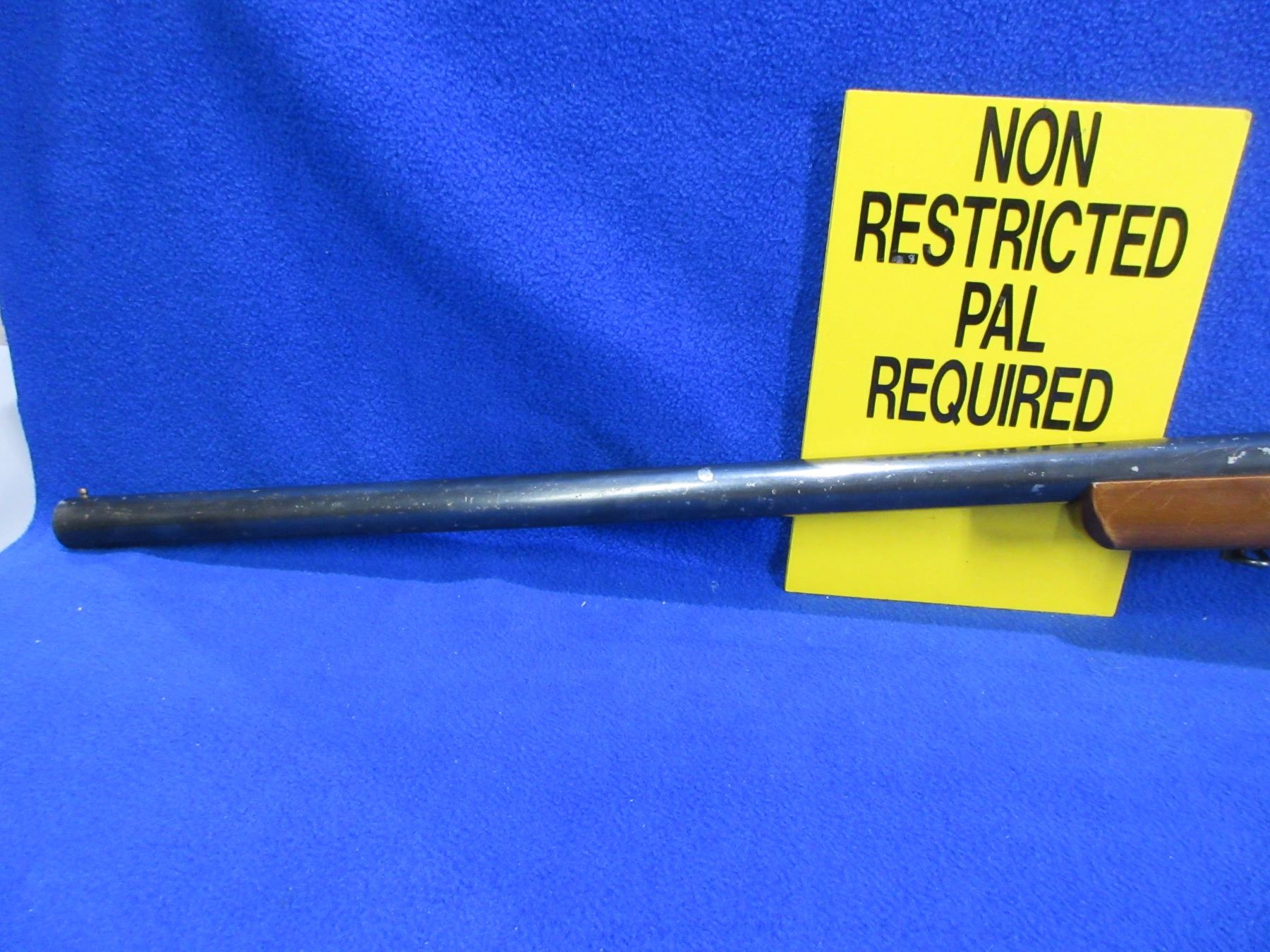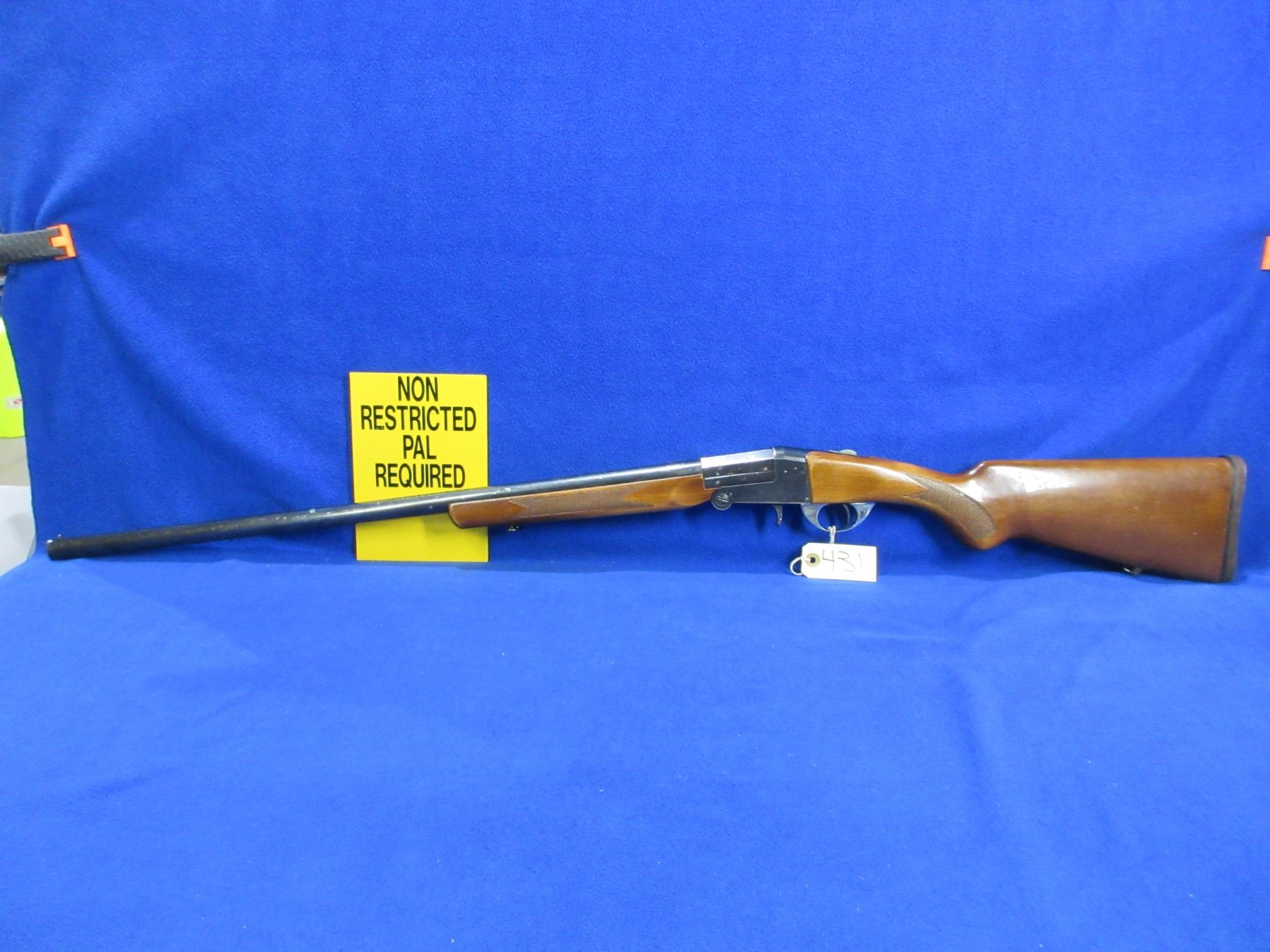 Non-Restricted - Italian Polarms Single Shot in 12 Ga. 2 3/4" - This is a tip up single shot shotgun, action is tight and appears to be in good to very good working order. Barrel is 27 3/4", bore is good to very good, bluing is speckled, has bead front sight, stock has a 1" hairline crack behind the top tang, forearm is good with usage marks, rubber pad poor, comes with swivels. Ser # 4989