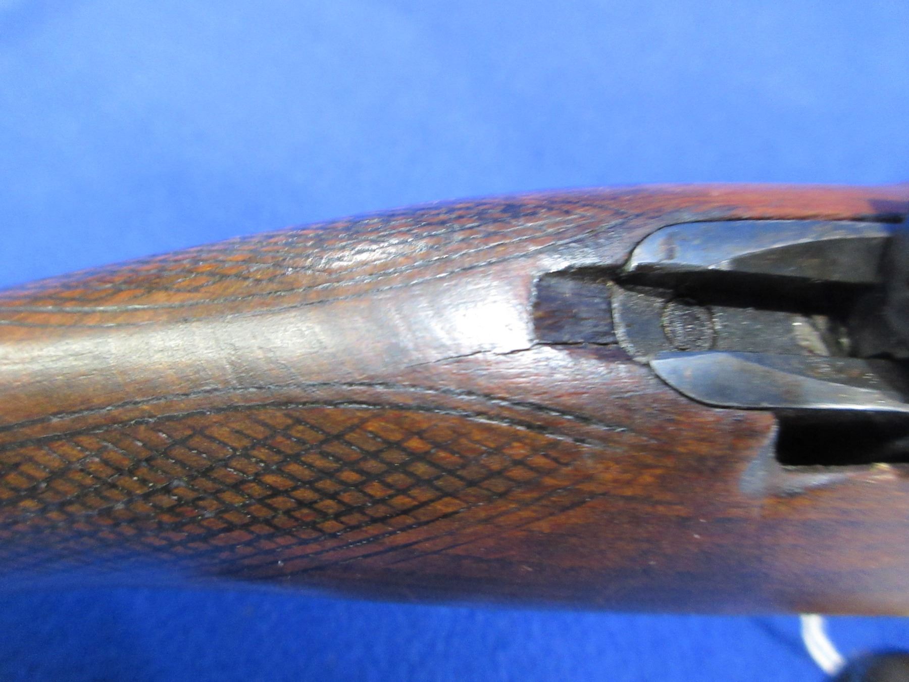 Non-Restricted - Husqvarna Model 640 in 8x57 - This is a bolt action rifle with floorplate magazine, action appears to be in good to very good working order. Barrel is 23 1/2", rifling is good to very good, bluing has some light pitting, has front sight, rear sight missing but is drilled and tapped, stock has a hairline crack behind the top tang, butt plate, wrist cap and swivels missing. Ser #106943
