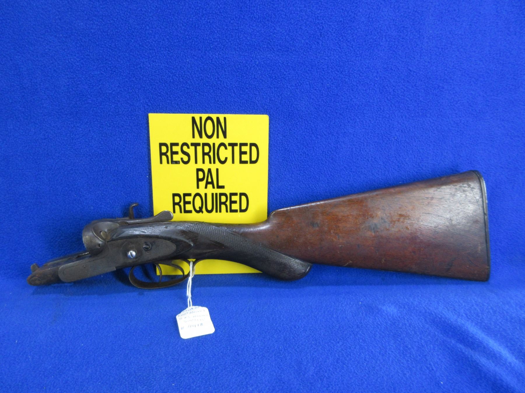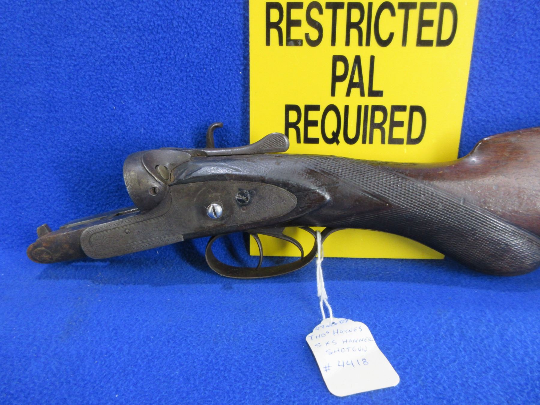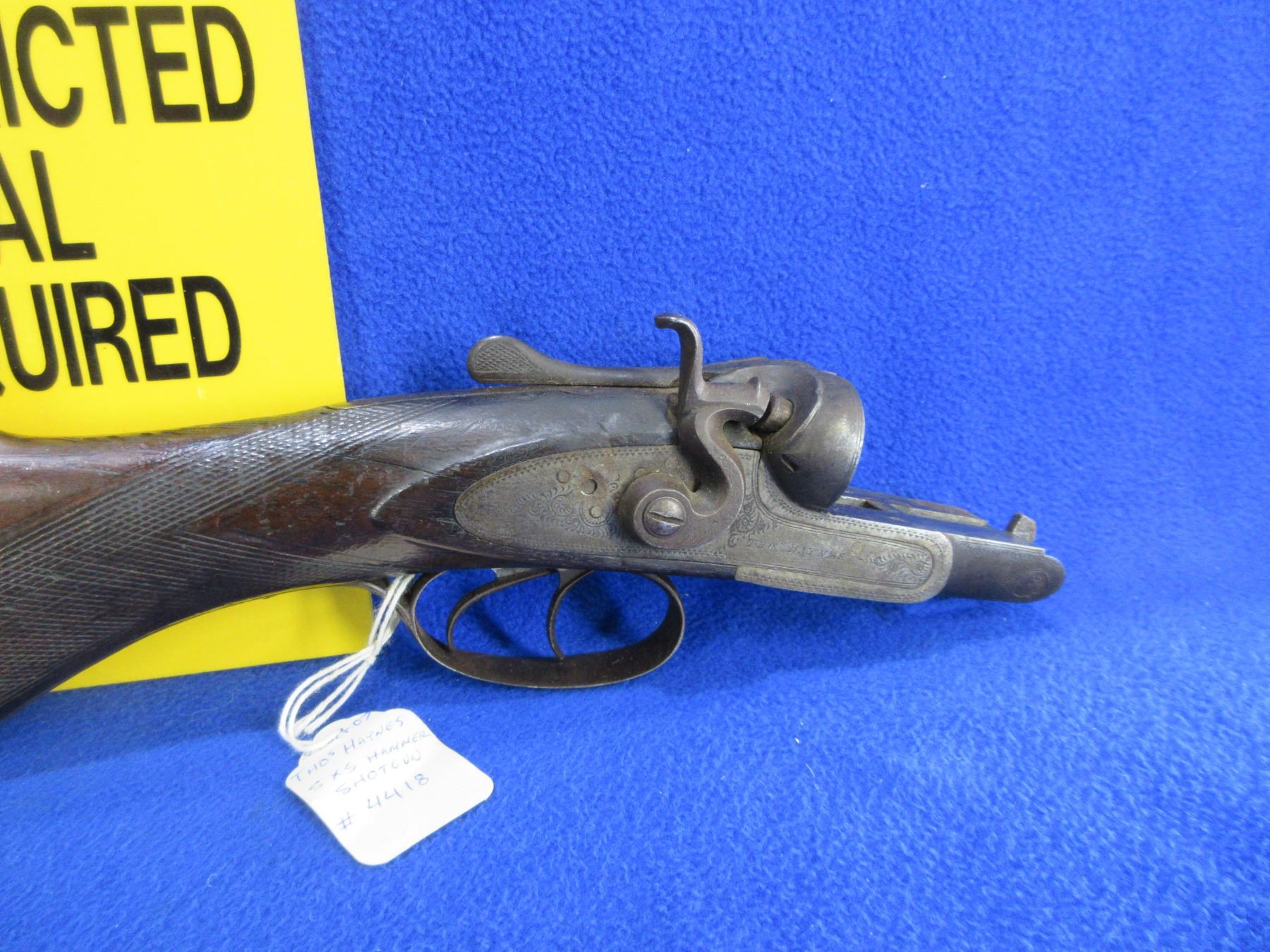 Non-Restricted - Action and Stock - THO's Haynes SXS Hammer in Appears to be 10 Ga. - This is an action, stock and triggers/guard only. Action is missing a hammer, stock has a drying crack on the butt end, comes with a butt plate.Ser # 4418