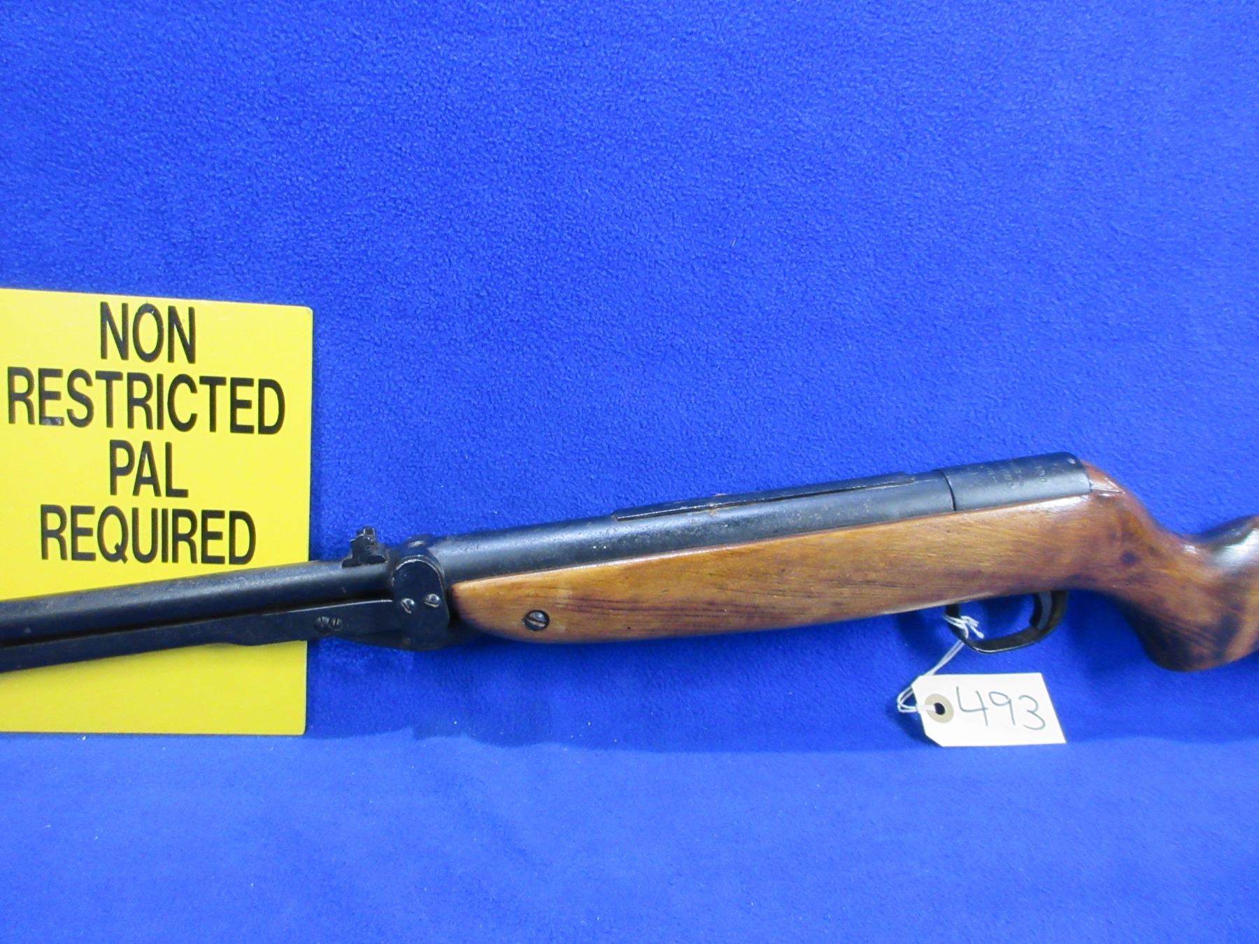 Non-Restricted - Webley & Scott Mk 3 Air Rifle in 22 Cal. - This is a pump action single shot under lever air rifle, action appears to be in good to very good working order. Barrel is 18 1/2", rifling appears good, bluing has rust and pitting, has both sights, stock is good with usage marks. Ser # B2497