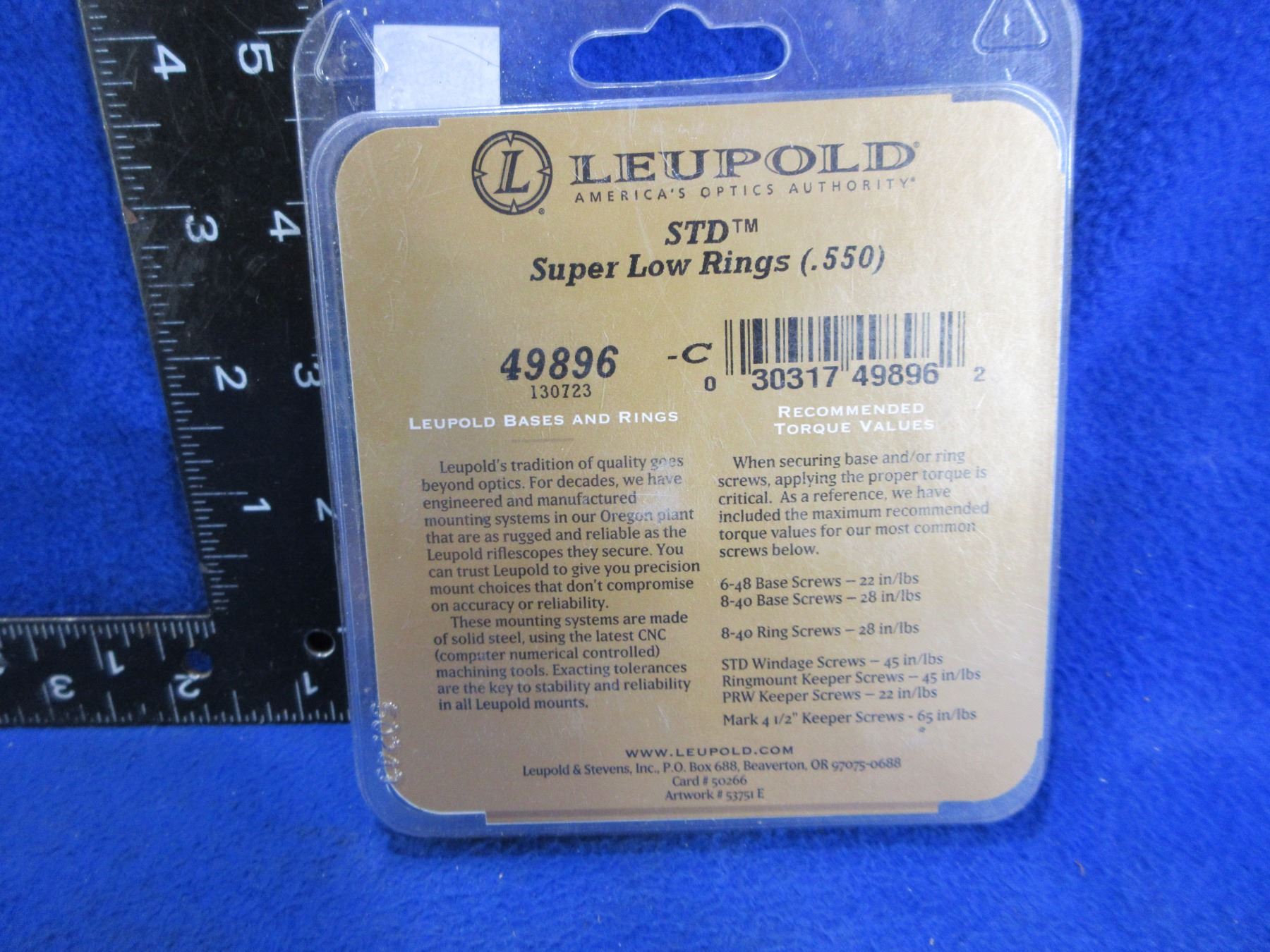 Lot 1033 NEW - Leupold STD Super Low Rings, Matte # 49896