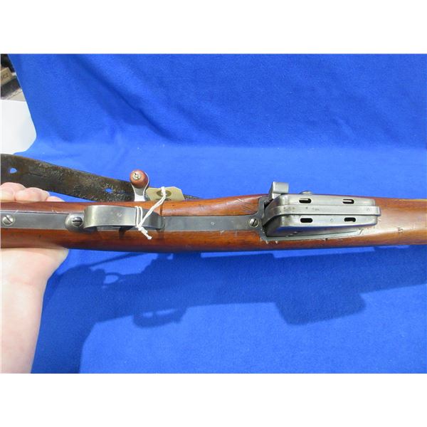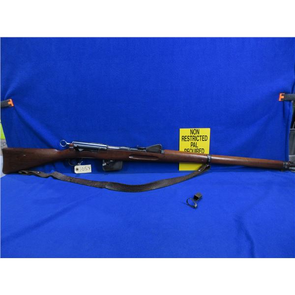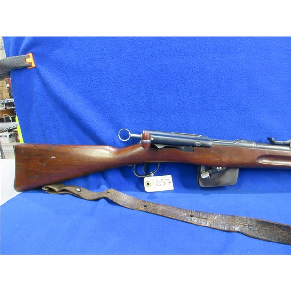 Non-Restricted - Schmidt Rubin Model 1889 in 7.5X53.5 Swiss - This rifle is in very nice condition for it's age. It is a straight pull bolt action rifle with non-removable magazine, action appears to be in good to very good working order. Barrel is 30 3/4", rifling is good, bluing is good, has both sights, full wood stock is good with usage marks, metal butt plate good, comes with muzzle cap, swivels and strap, appears all numbers matching. Ser #115325