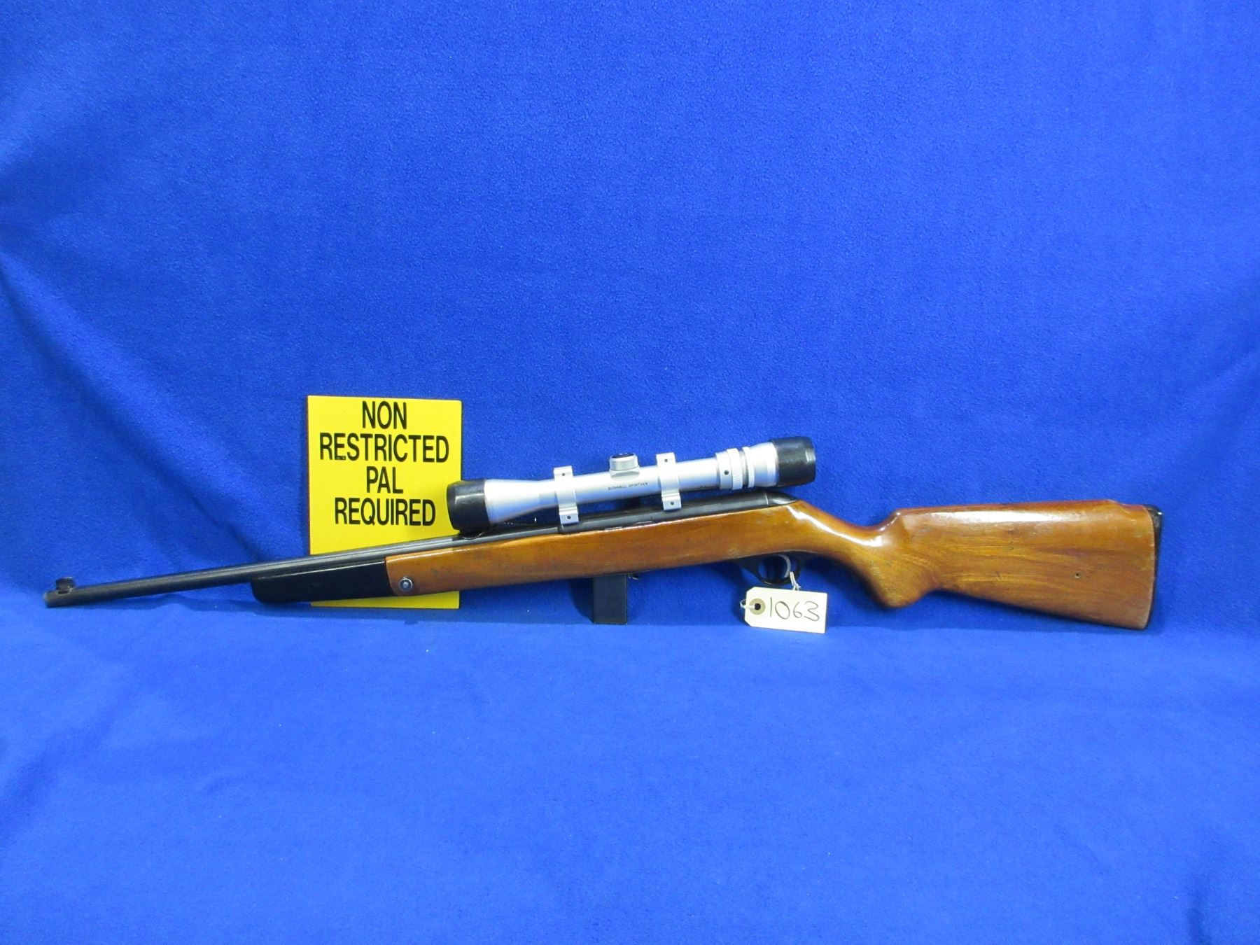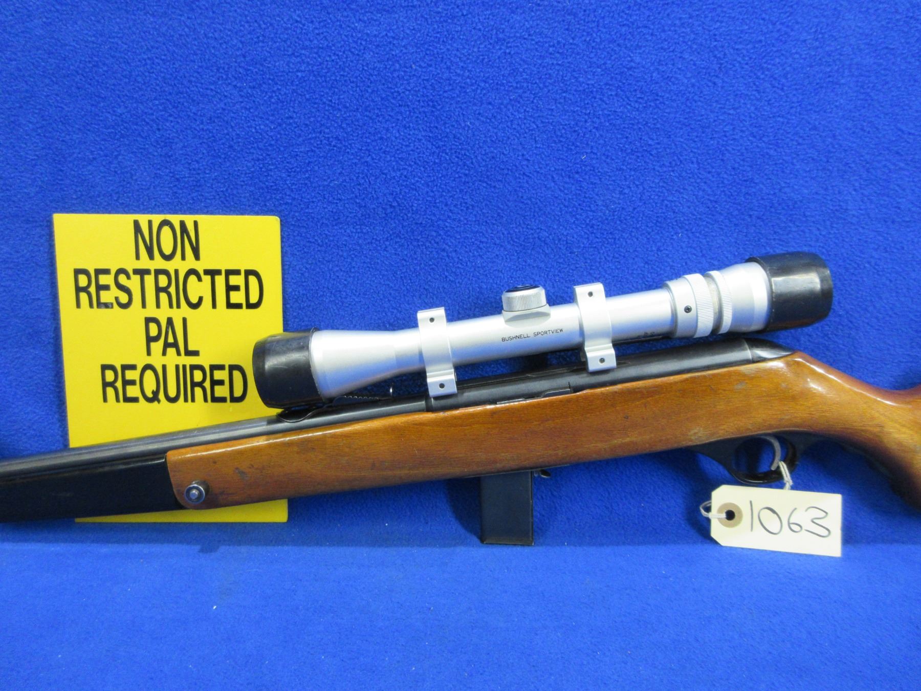 Non-Restricted - Mossberg Model 352K in 22 S/L/LR - This is a semi-auto rifle with removable magazine, action appears to be in good to very good working order. Barrel is 18 1/4", rifling is good to very good, bluing is good with some light pitting at muzzle, has both sights and Bushnell Sportview 3-9x32 scope with lens covers - appears clear - duplex reticle, stock with pistol grip forearm is good with usage marks, butt plate good. Ser # None