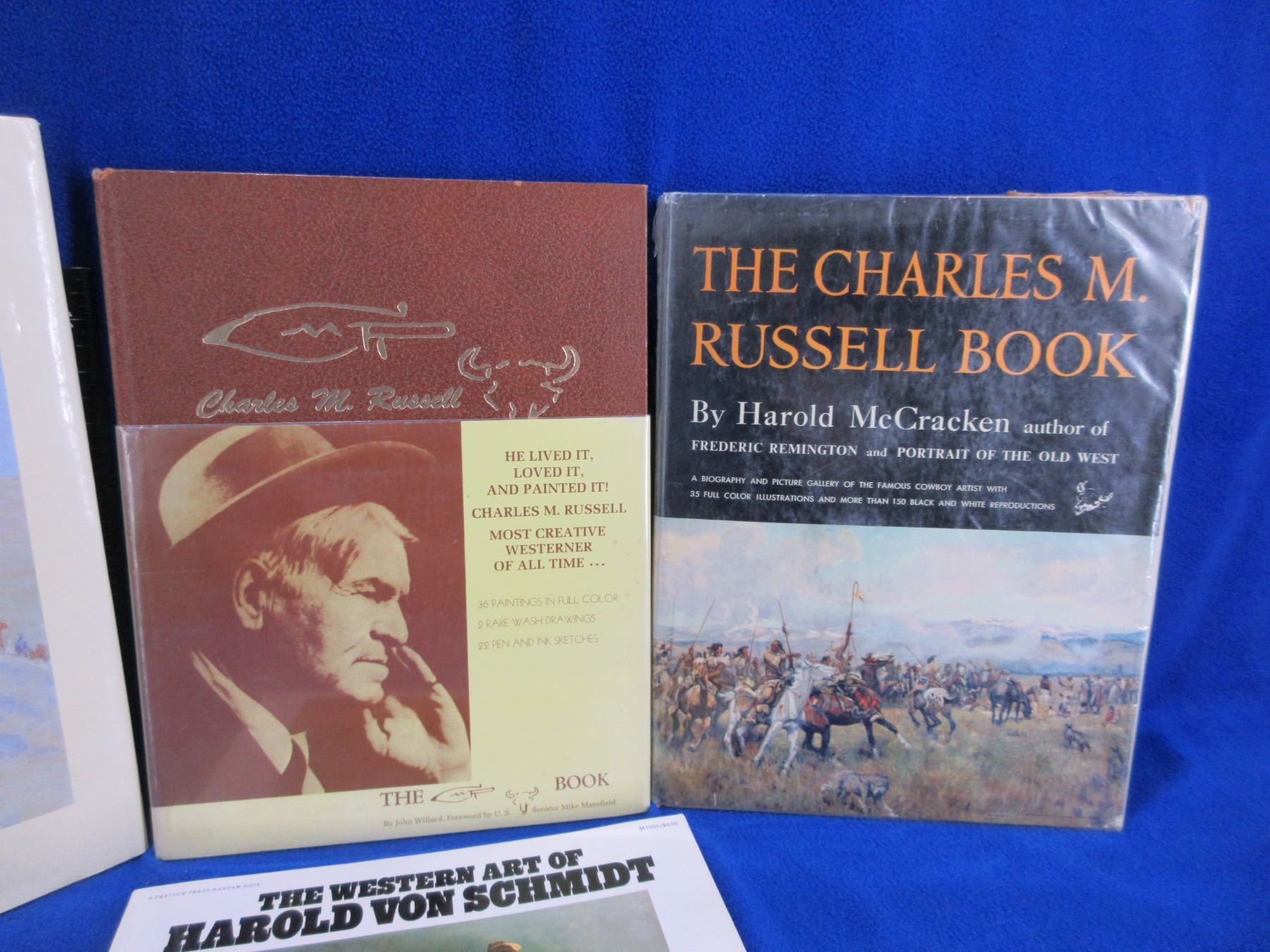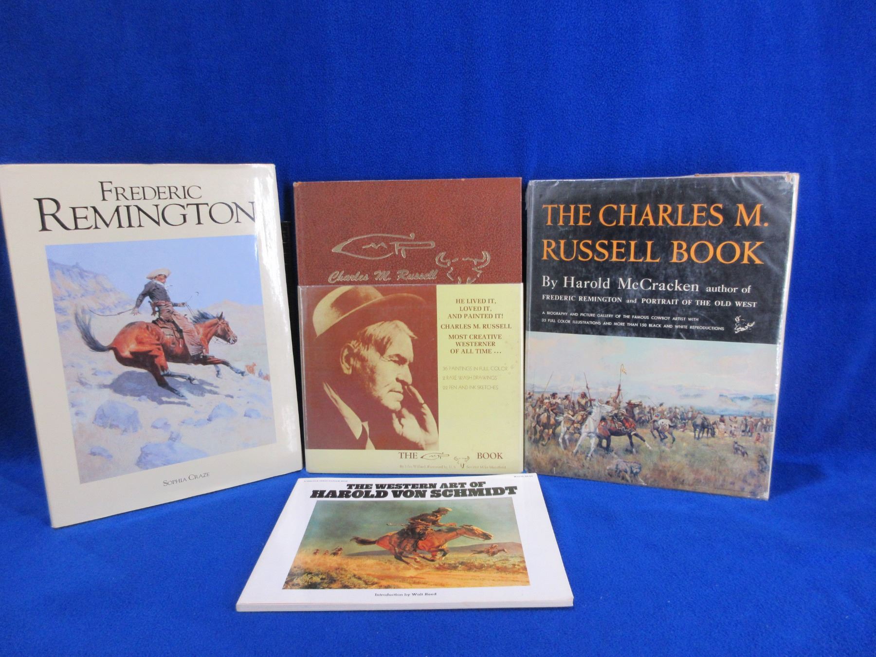 4 Vintage Western Art Books - The Western Art of Harold Von Schmidt, The Charles M. Russell Book, Charles M. Russell "The Book", Frederic Remington