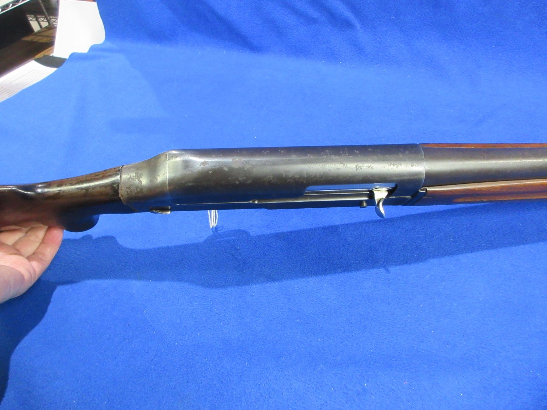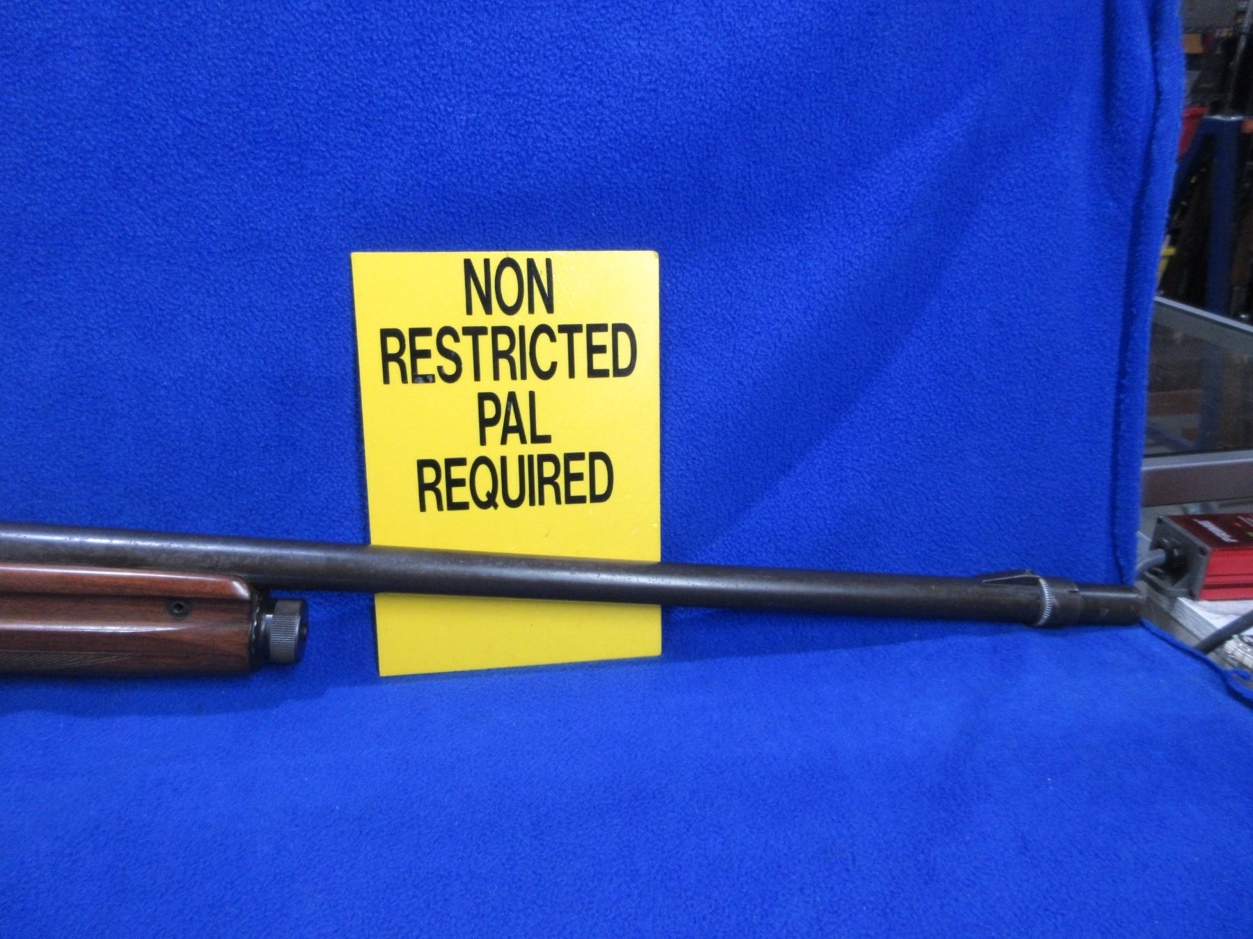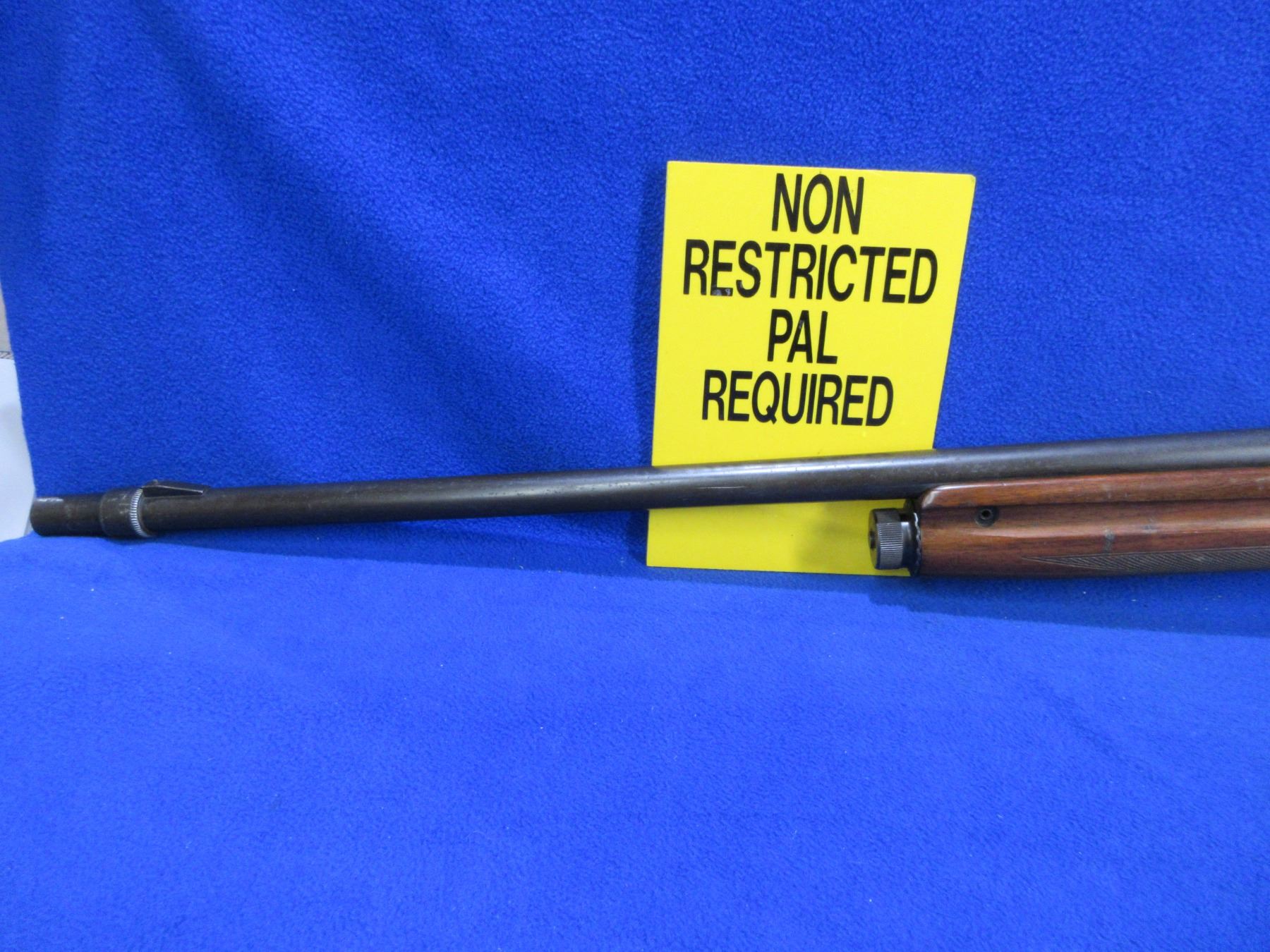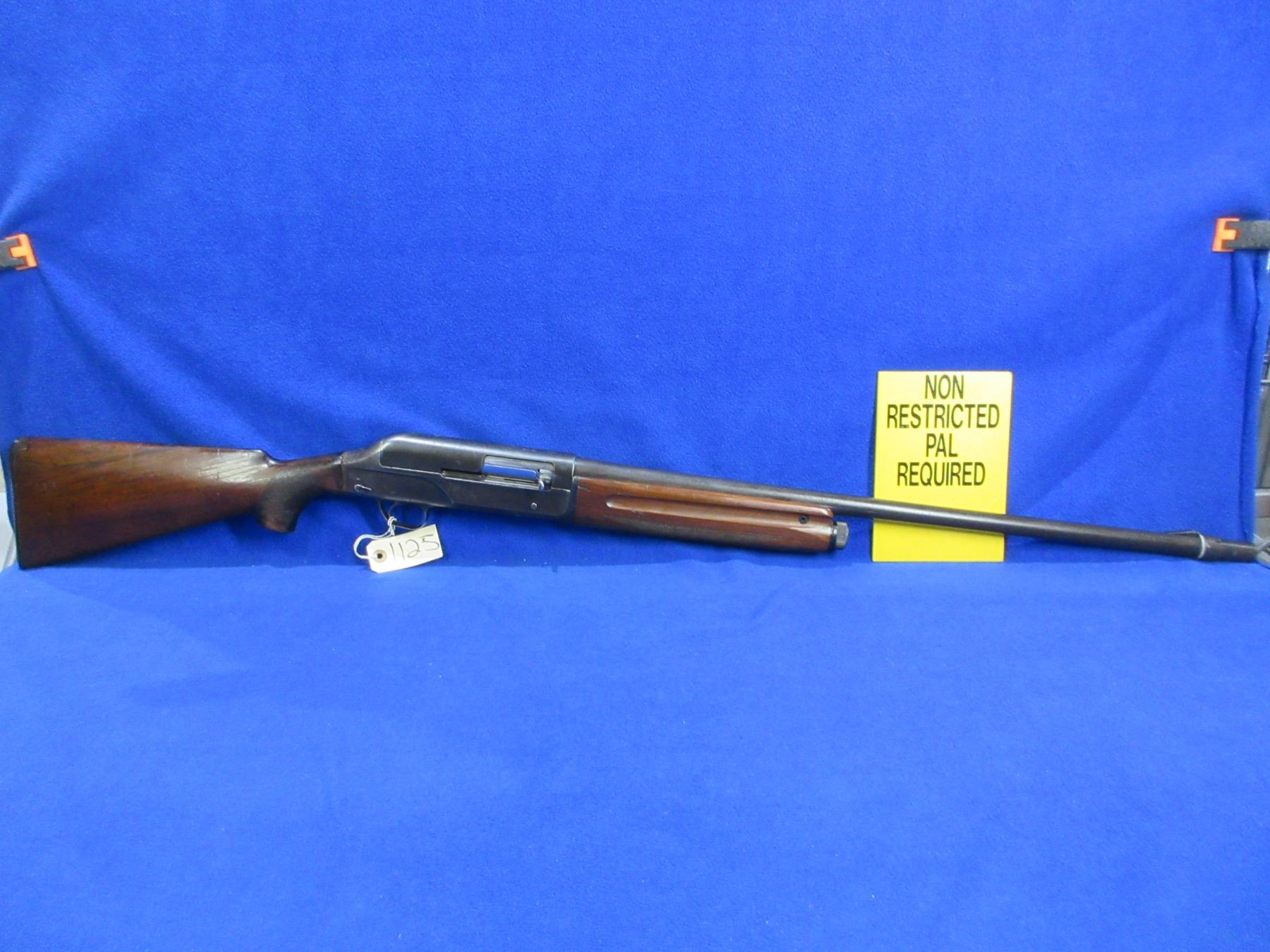 Non-Restricted - Breda Brescia Made in Italy in 12 Ga. 2 3/4" - This is a semi-auto shotgun, action appears to be in good working order. Barrel is 25 1/2", bore is good to very good, bluing has pitting, has blade front sight, stock has a crack on top at the wrist area, forearm is good with usage marks, butt plate good, comes with Quick choke m/m 0.25, swivel studs are missing. Ser #28342