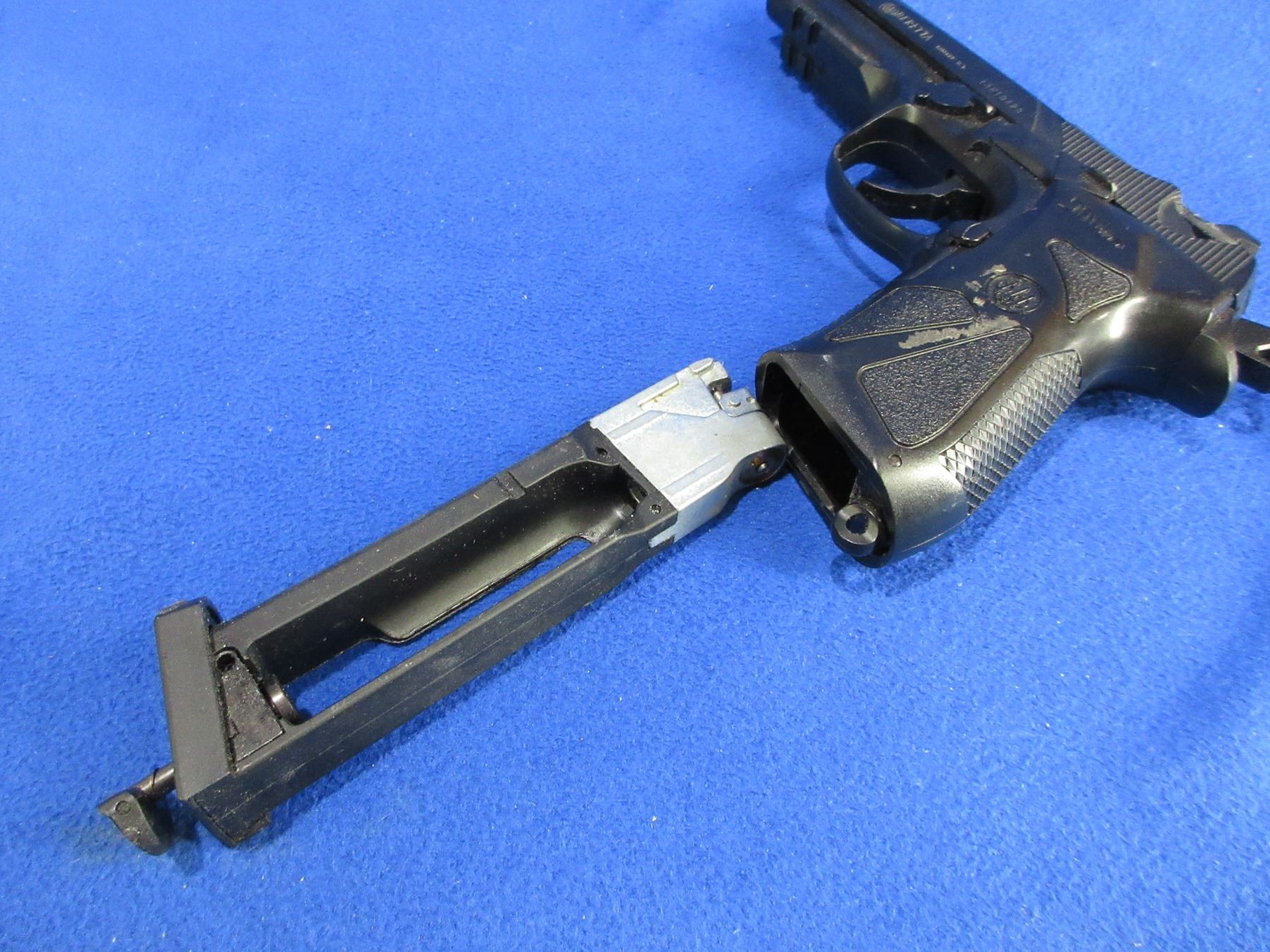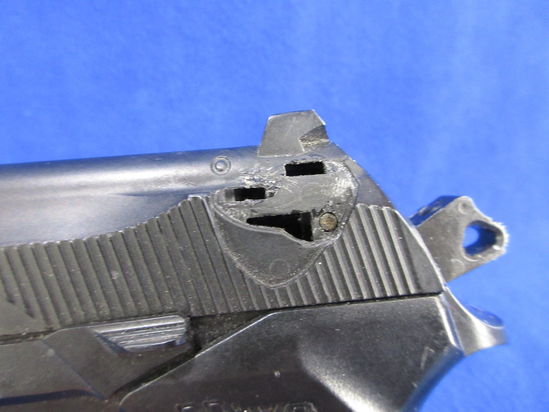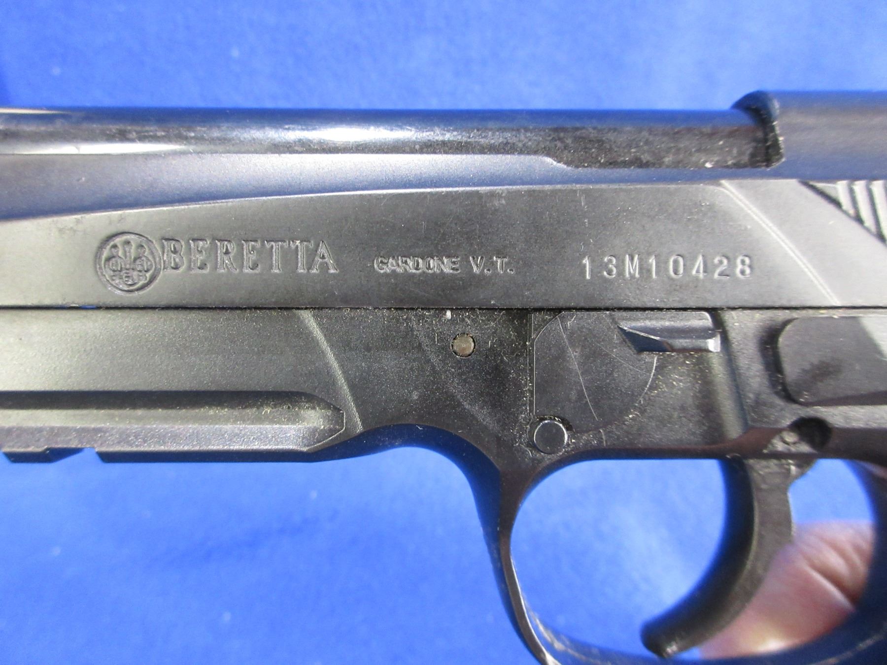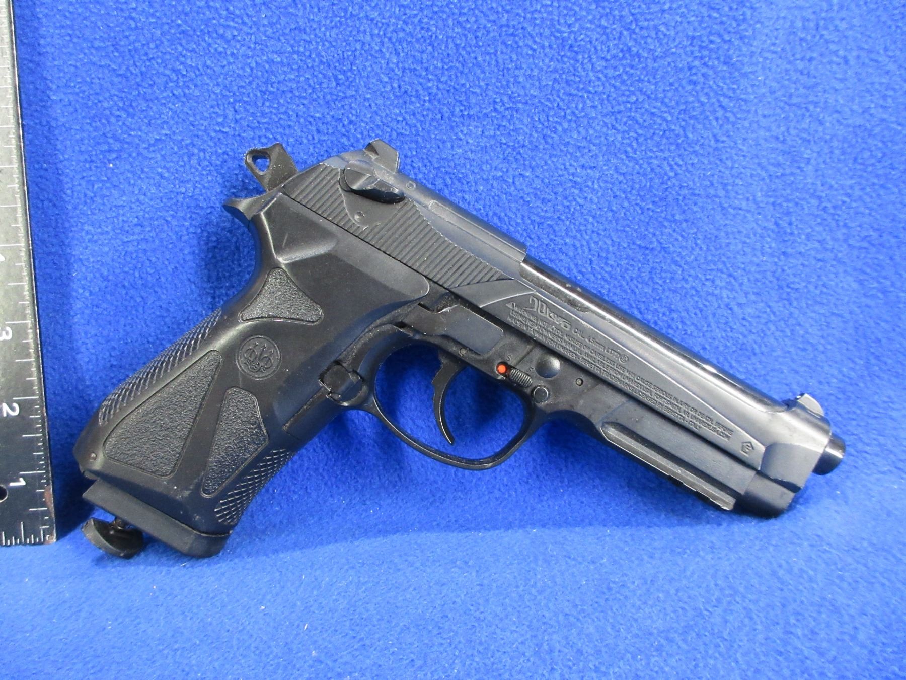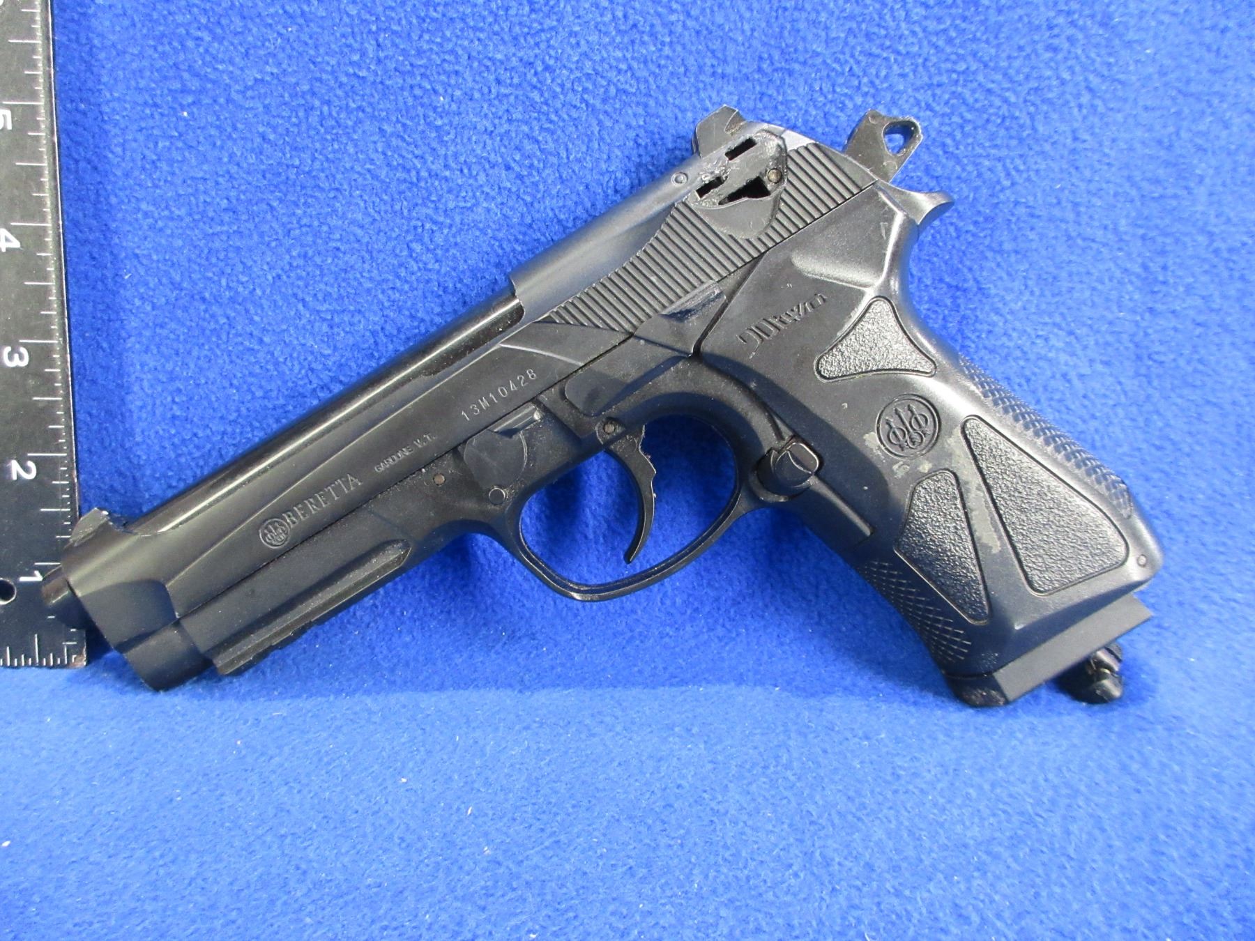 No PAL Required - Beretta 90Two CO2 BB Pistol in 177 Cal. - This double action CO2 BB pistol appears to be in working order. Barrel is 5", smooth bore appears good, finish is good, has both sights, grips are good, has a plastic piece missing on top left at he back. Ser # 13M10428