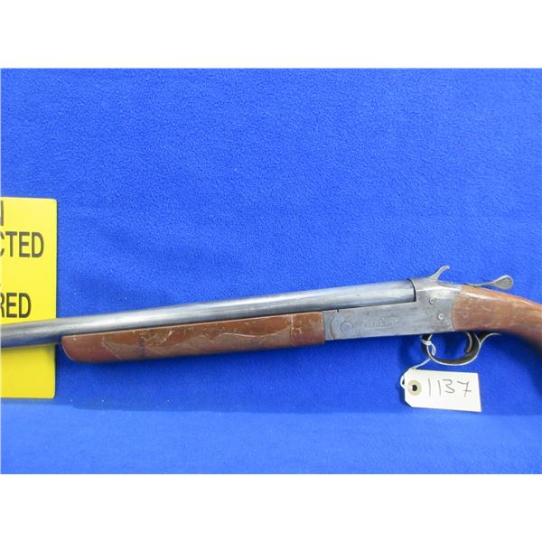 Non-Restricted - Mercury Single Shot in 16 Ga. 3" Full - This is a tip up single shot hammer shotgun, action is tight and appears to be in good to very good working order. Barrel is 30", bore is good to very good, bluing is mostly gone, has bead front sight, stock is good with usage marks and finish flaking, forearm is good with usage marks, butt plate good. Ser # 33774
