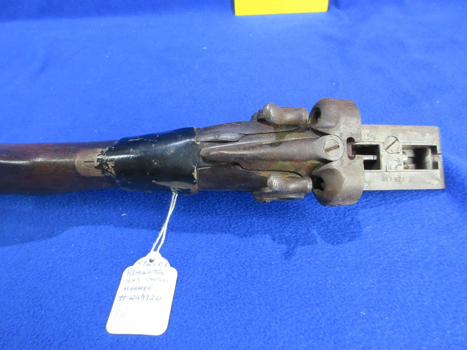 Non-Restricted - Action and Stock - Remington SXS Hammer Shotgun - Appears to be 12 Ga. - This is an action, stock, hammers and trigger/guard only. Stock has cracks and a repair in the wrist area, action appears to be in working order but firing pins are missing, butt plate is broken. Ser # 249926