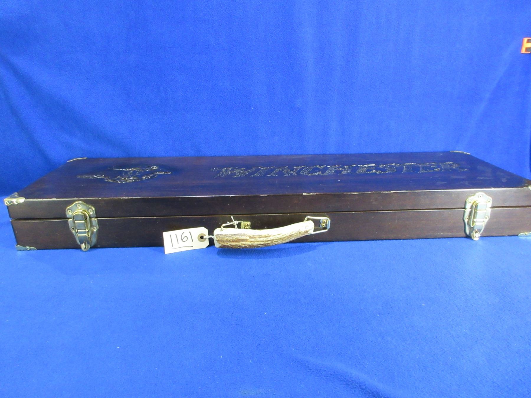 Lot 1161 Vintage Wood Winchester Shotgun Case with Antler Handle