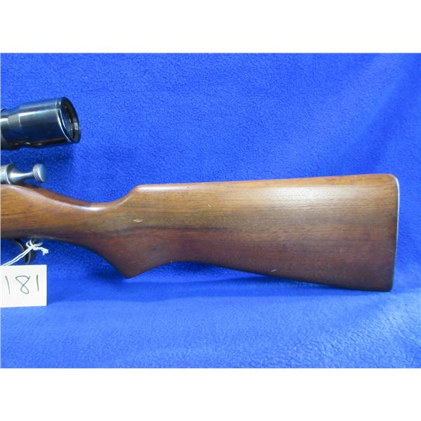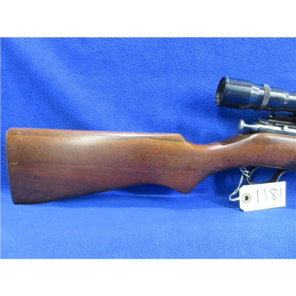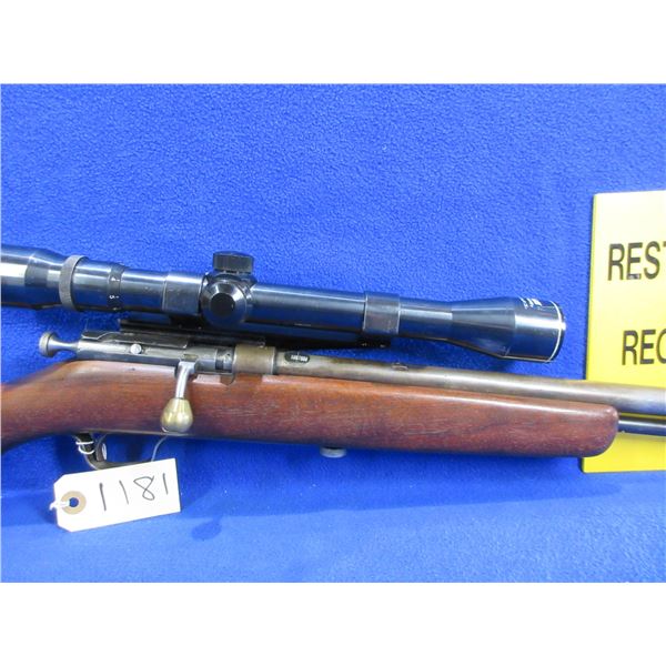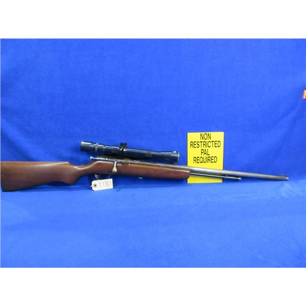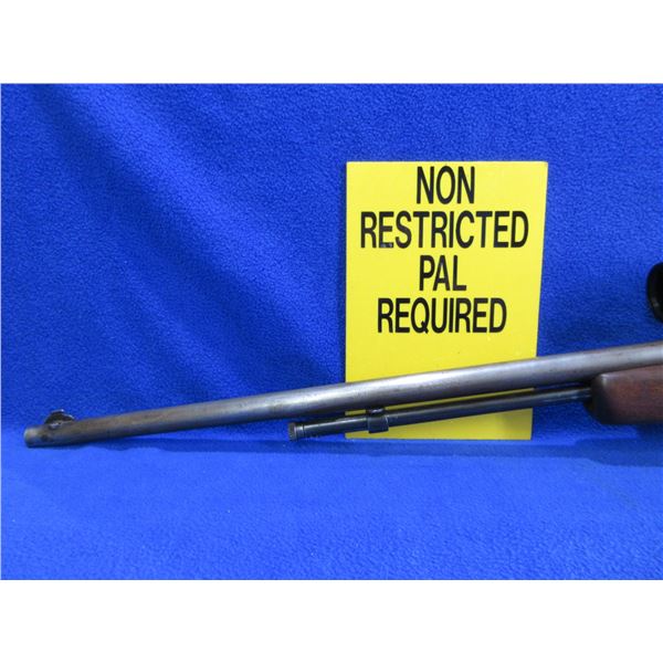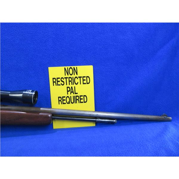 Non-Restricted - Cooey Model 60 in 22 S/L/LR - This is a bolt action rifle with tube magazine, action appears to be in good working order. Barrel is 24", rifling is good to very good, bluing is gone, has front sight, rear sight missing but has Bushnell Challenger 3-9x34 scope - appears clear - duplex reticle , stock is good with usage marks, metal butt plate good. Ser #5887668 on sticker
