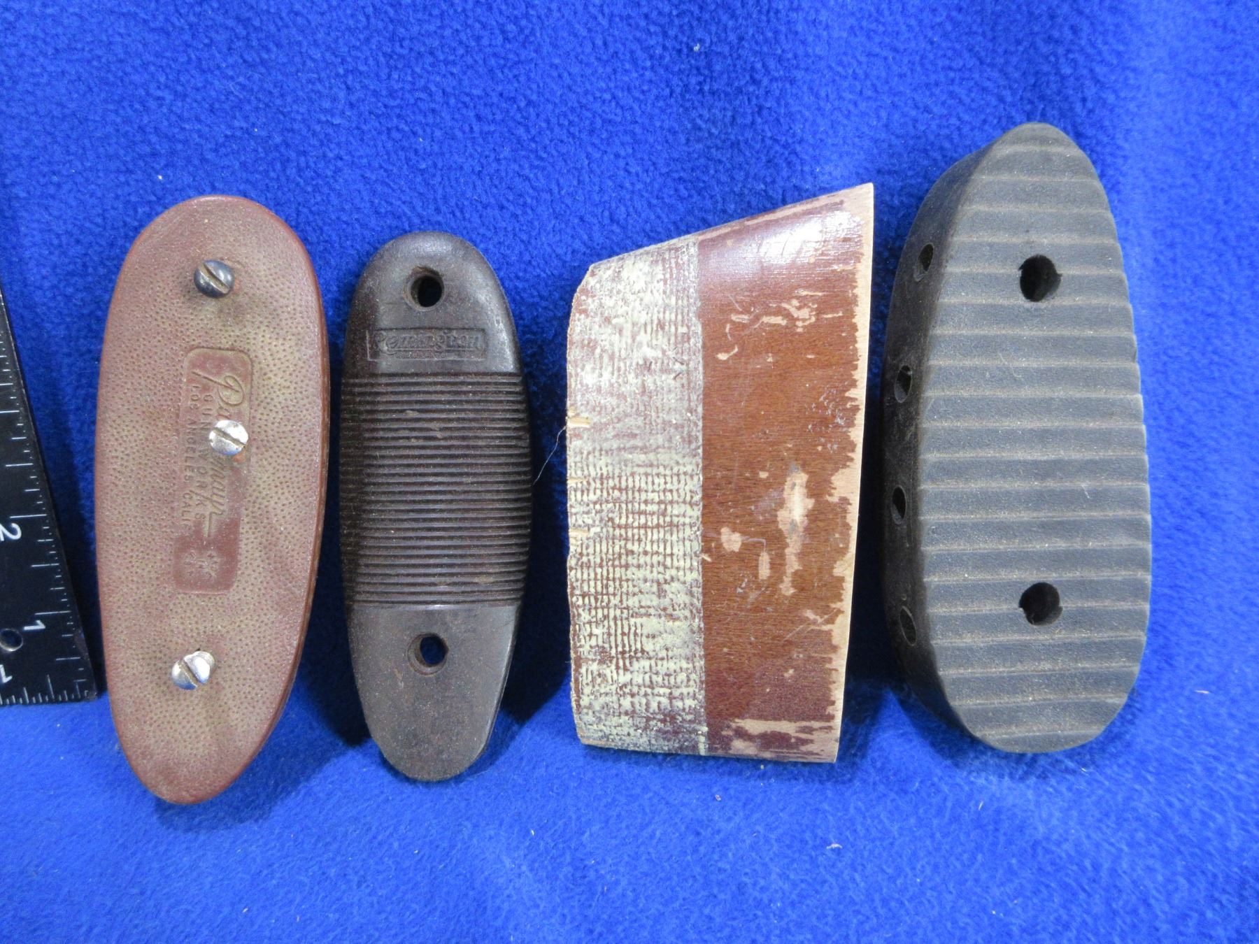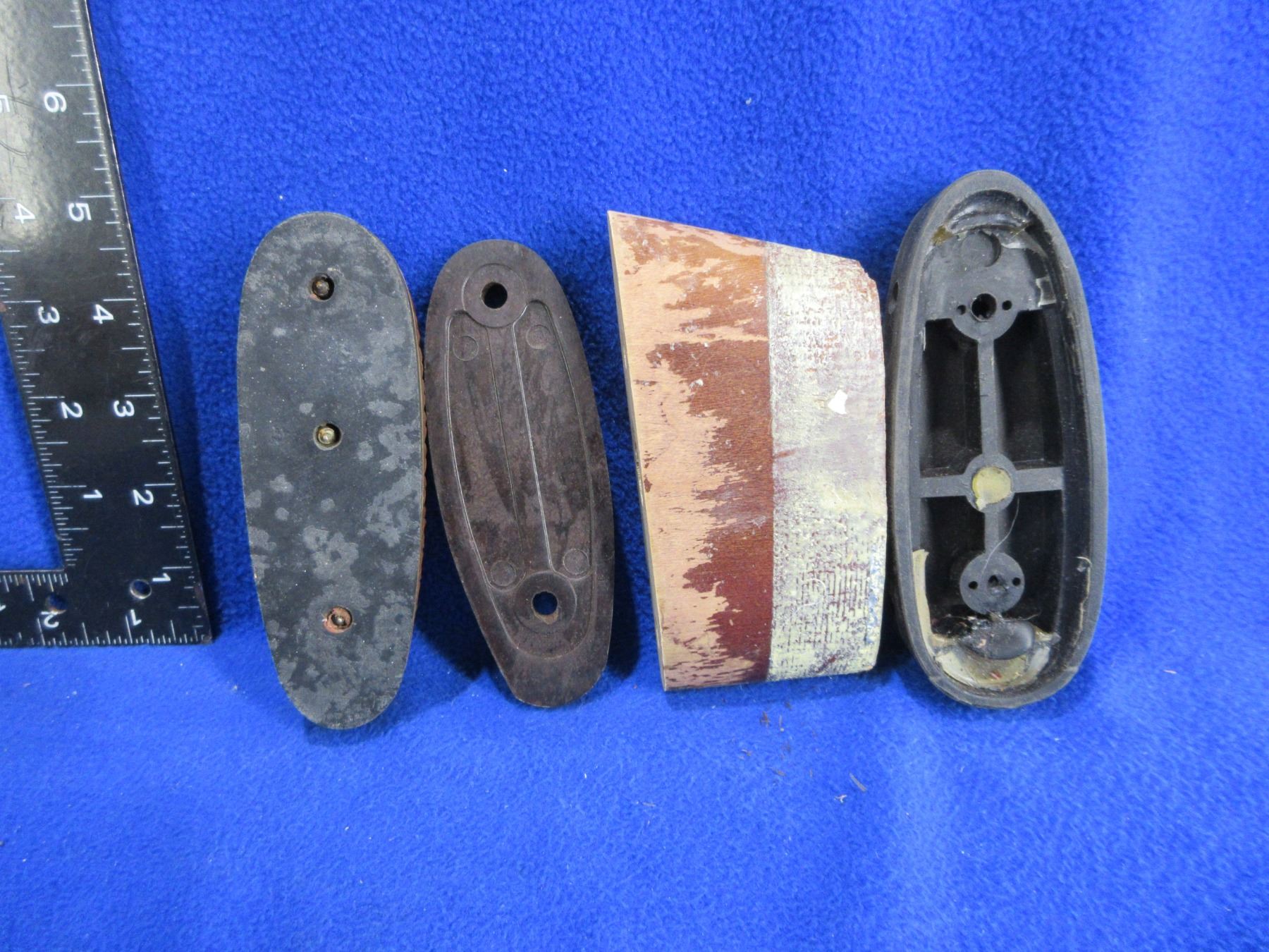 3 Butt Plates and a Spacer - Remington Butt Plate, Pachmayr Rubber Recoil Pad, Unknown Rubber Butt Plate, Wood Spacer