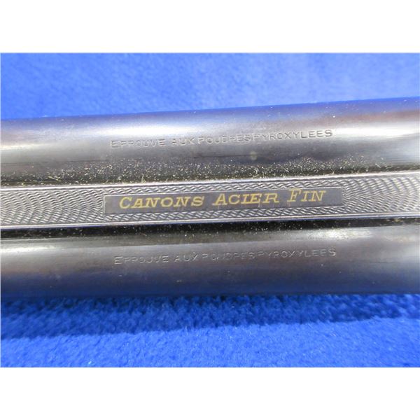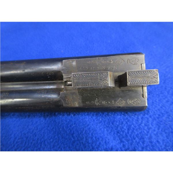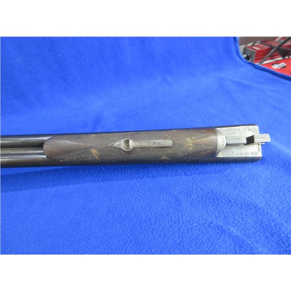 Barrel/Forearm Only - Canons Acier Fin SXS in 28 Ga. 2 3/4" - Barrels are 26", bores are fair to good (may need wet cleaning), bluing is turning brown with some light pitting, has front bead sight, forearm has a hairline crack on the inside. Ser. # 559 - PAL Required