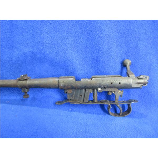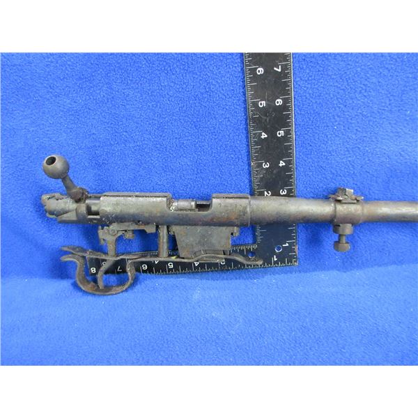Non-Restricted - Barreled Action - BRNO Model 1 in 22 LR - This is a barrel, action, bolt, trigger/guard and magazine only. Barrel is 23", rifling unknown (has fire damage and needs major cleaning), bluing has rust and pitting, has rear sight. Ser # 74215